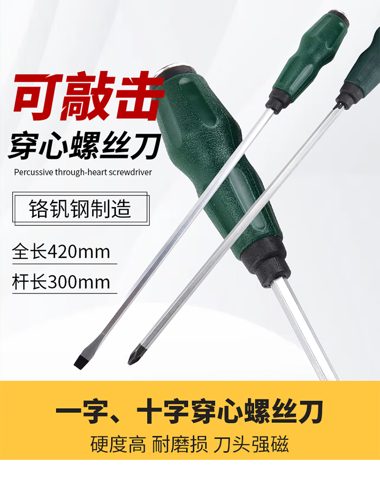 冰禹 可敲击穿心螺丝刀 BJ-179 加长十字一字磁性起子8*300mm 1把