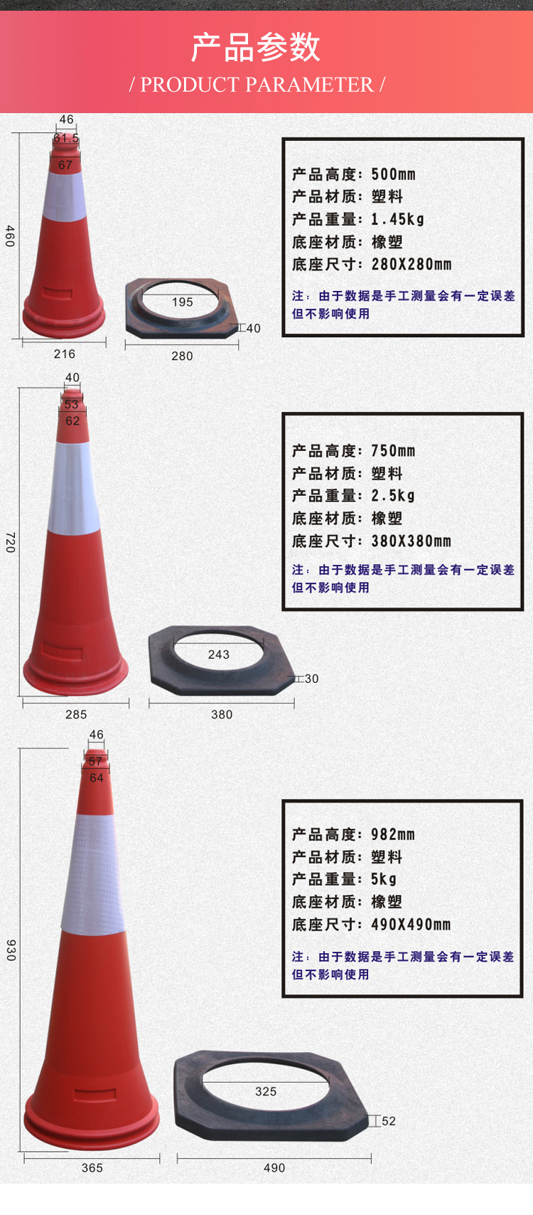 海斯迪克 塑料圆锥 gnjz-1055 PE反光路锥50*28*28cm 1个