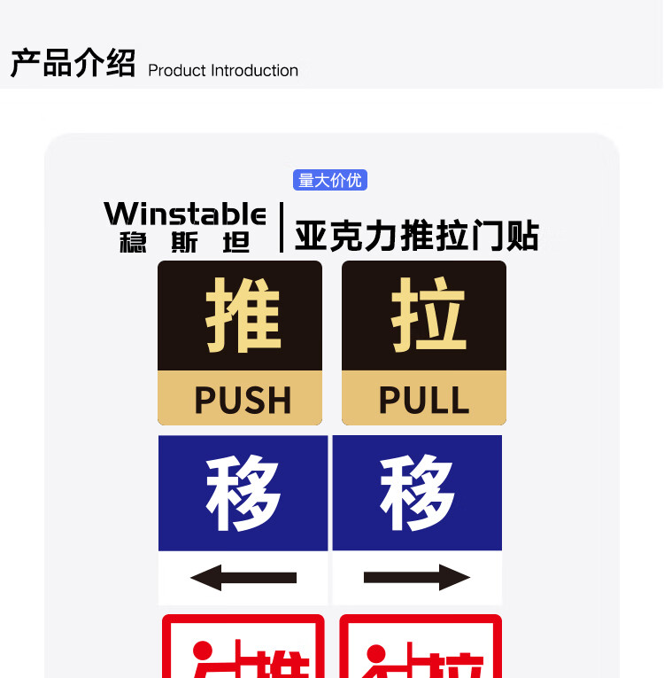 稳斯坦 玻璃门贴牌 WST167 左右移门门牌(推拉-C10) 1个