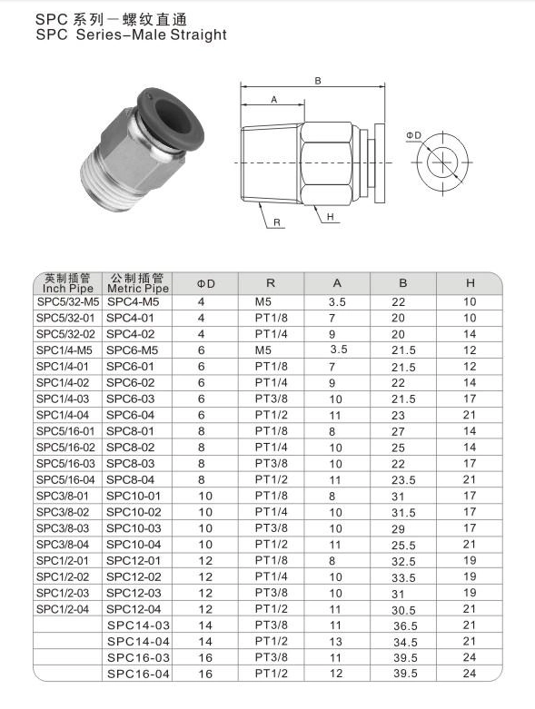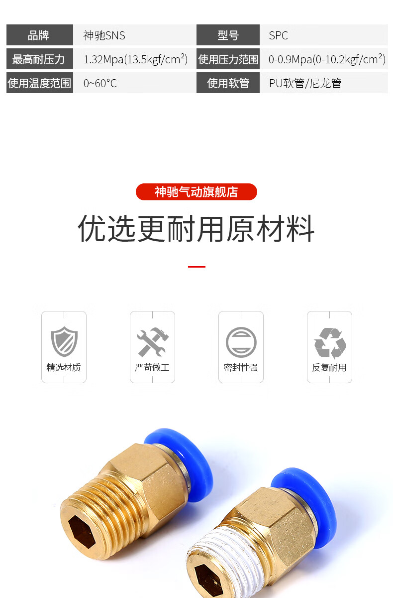 神驰 SP系列气管快速接头 外螺纹直通 SPC4-M5 1个