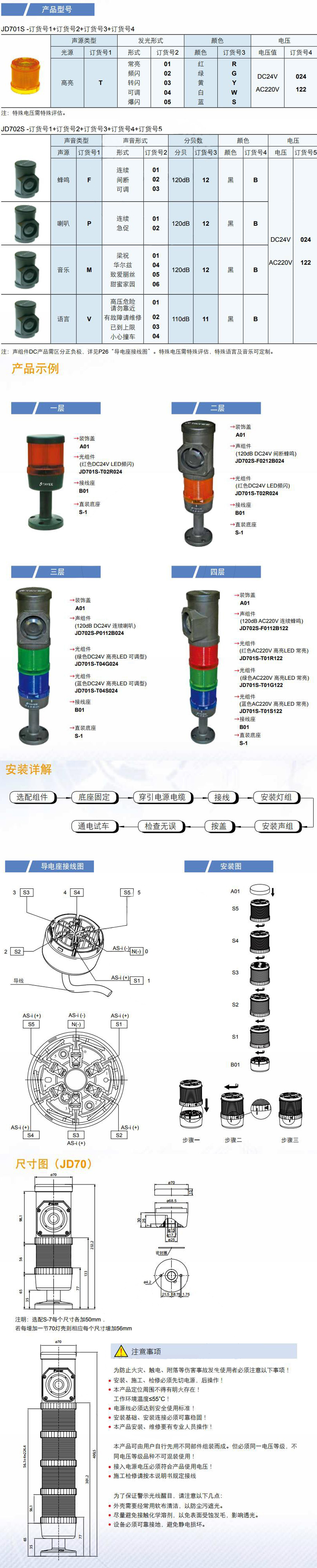 JD701S-T01RGY024+JD702S-F01 三色灯(黄绿红)+蜂鸣器