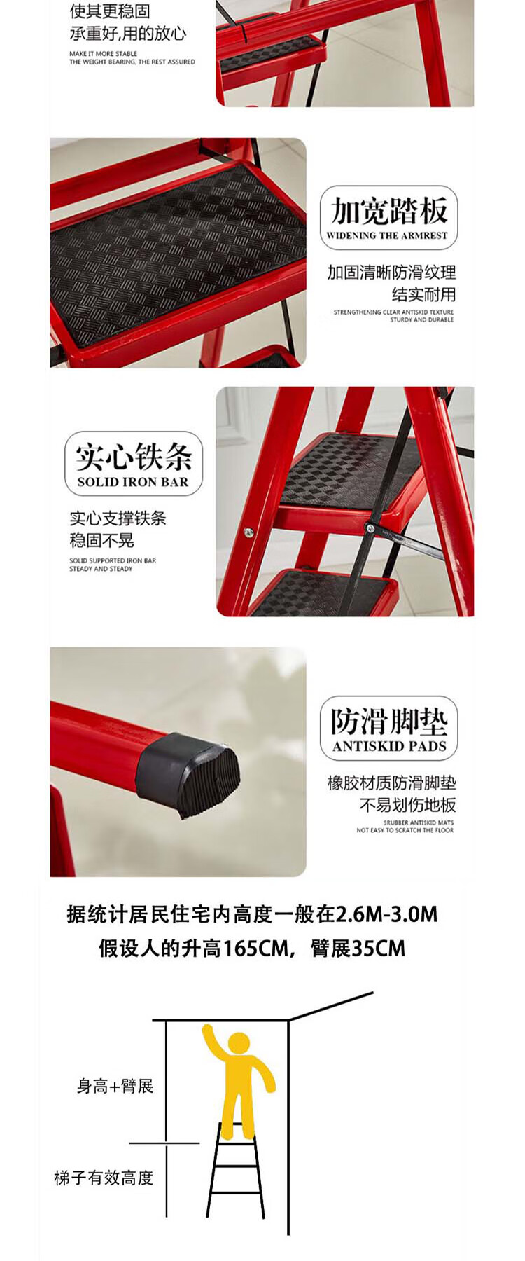 冰禹 折叠梯 Bj110 红色五步梯164cm 1个