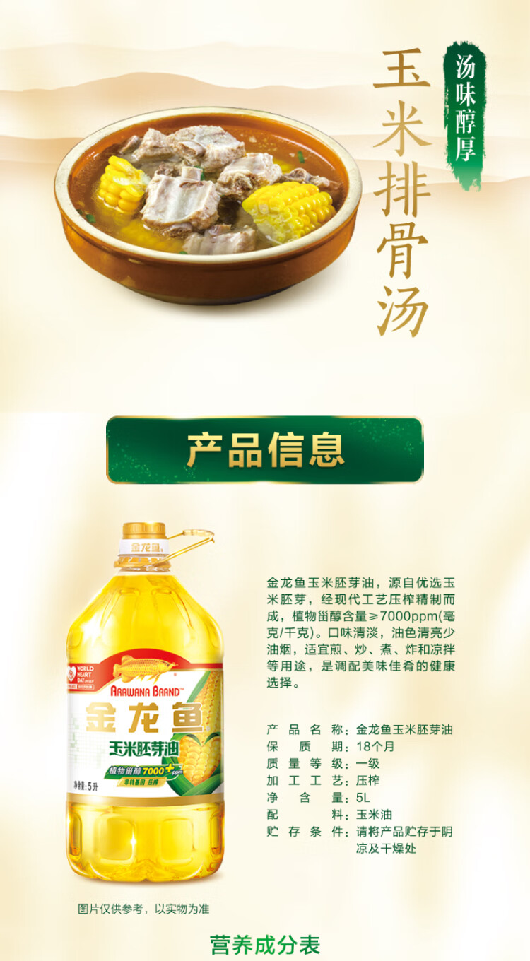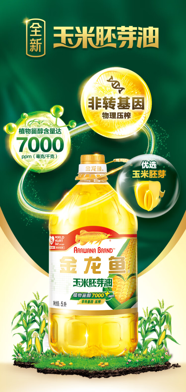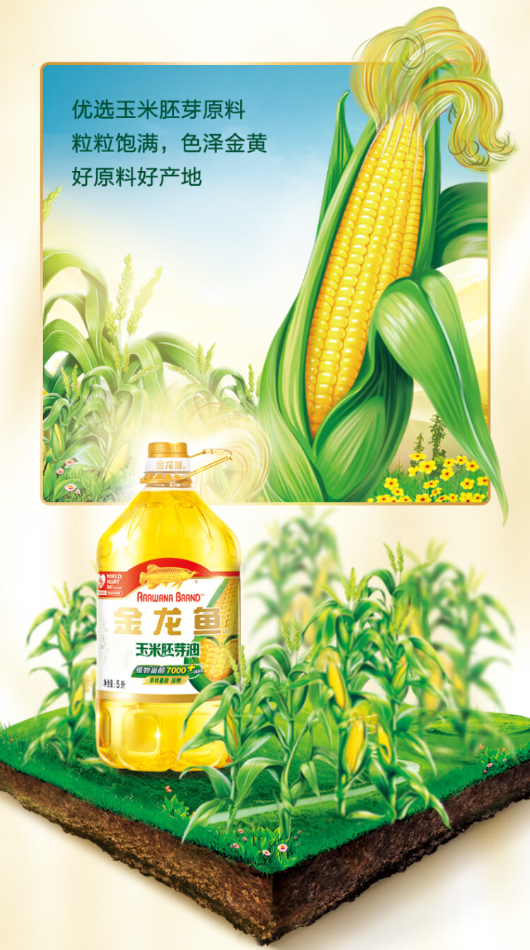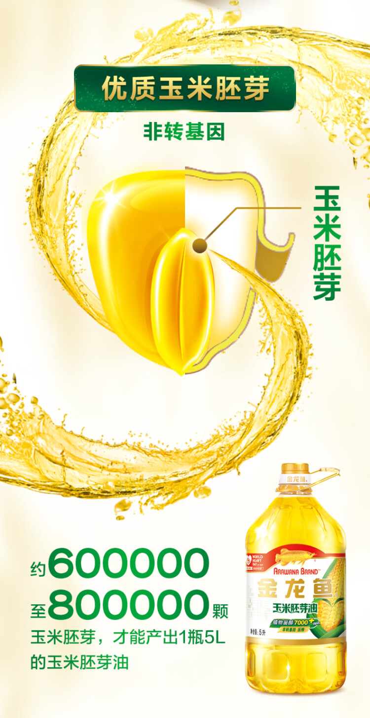 金龙鱼 非转基因压榨玉米胚芽油 5L 1桶