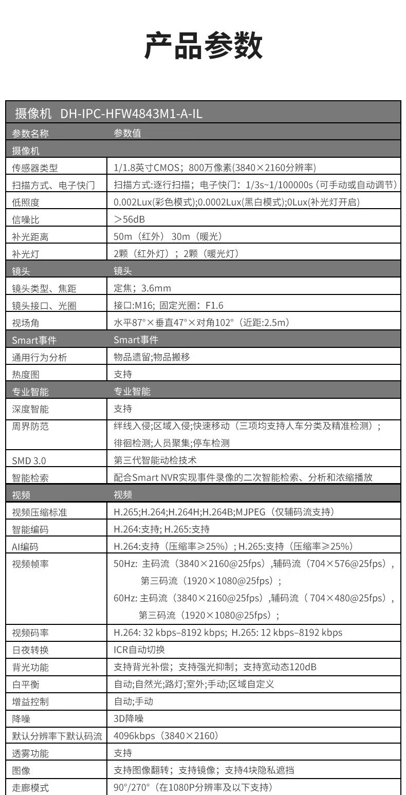 大华 高清摄像头 IPC-HFW4843M1-A-IL 3.6mm 800万双光夜视款 1个