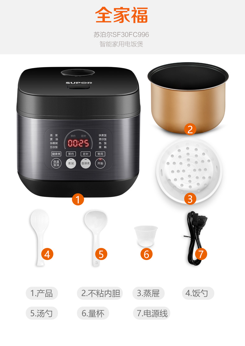 苏泊尔 多功能电饭煲 30FC996 3L 1台