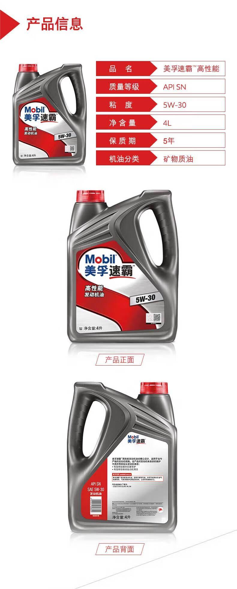 美孚 矿物质汽机油 5W-30 速霸高性能 SN 4L 1瓶