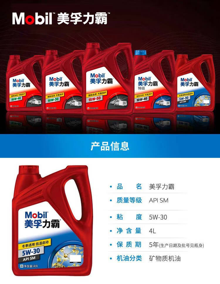 美孚 矿物质汽机油 5W-30 力霸9000 SM 4L 1瓶