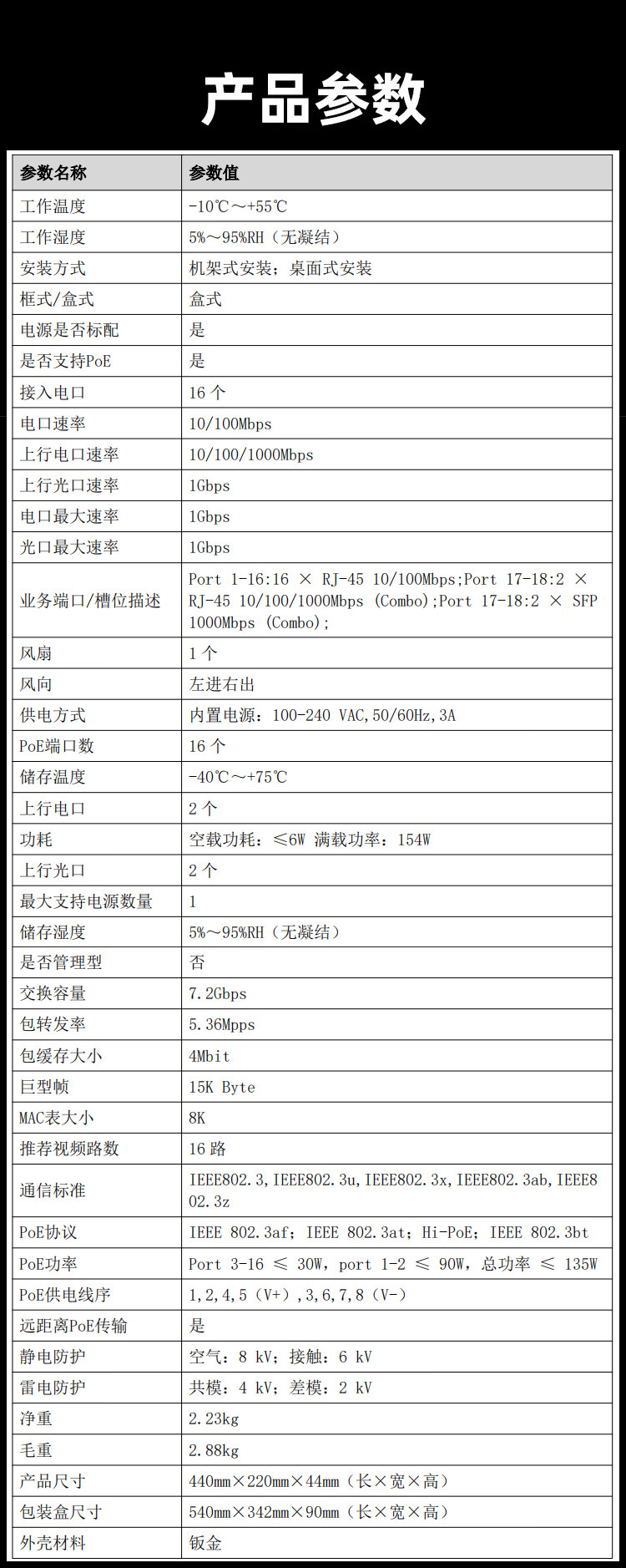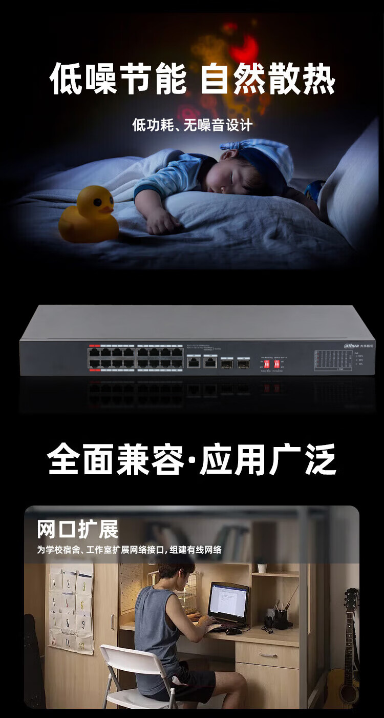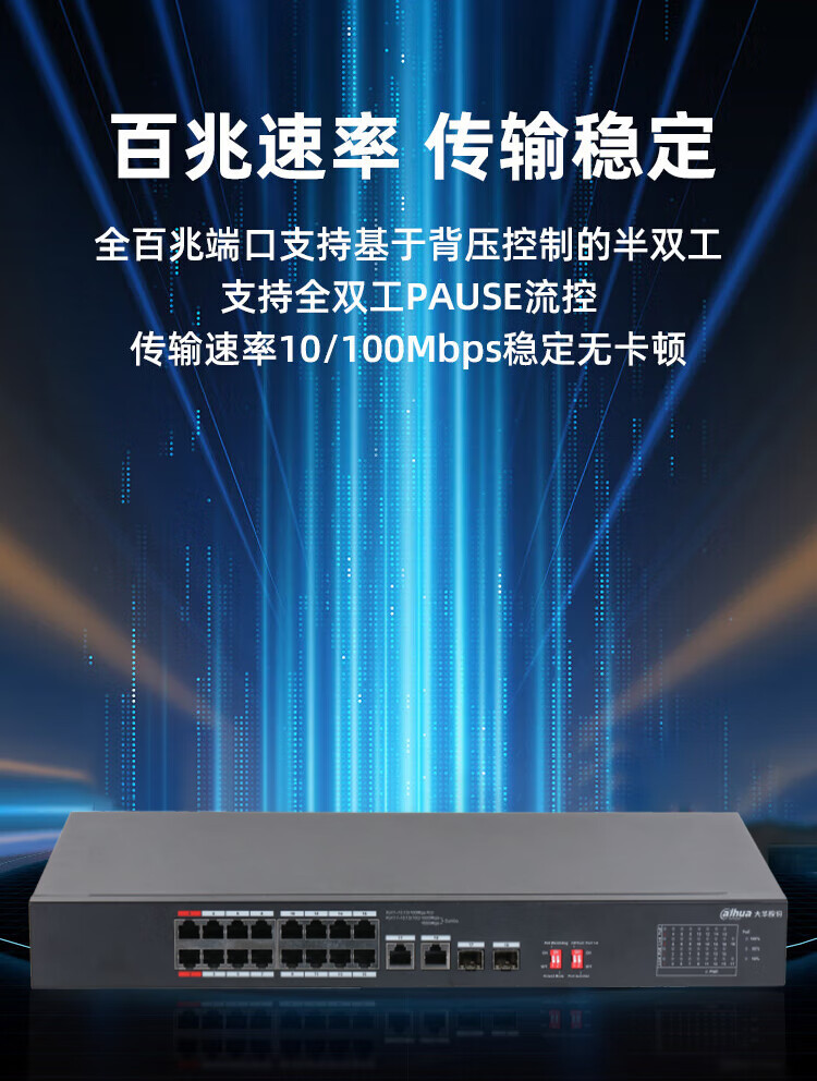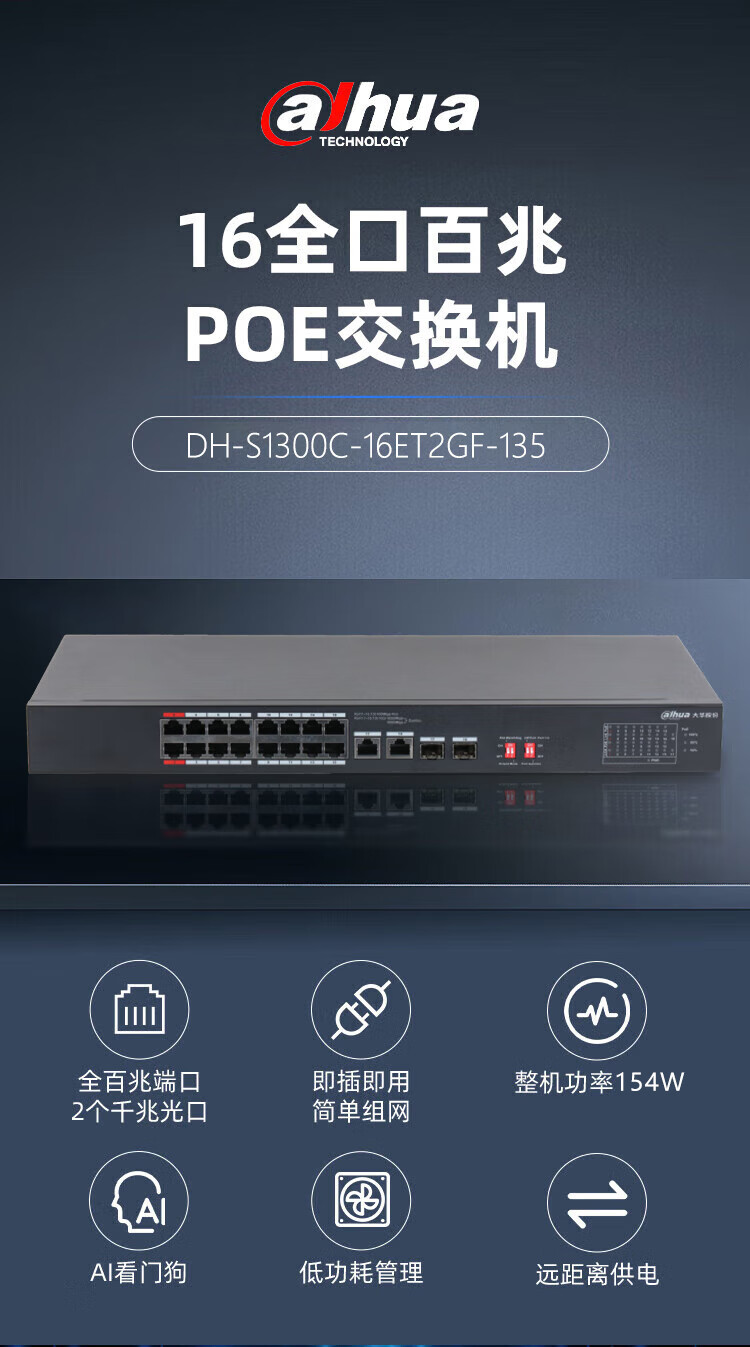 大华 百兆POE交换机 DH-S1300C-16ET2GF-135 16口 1台