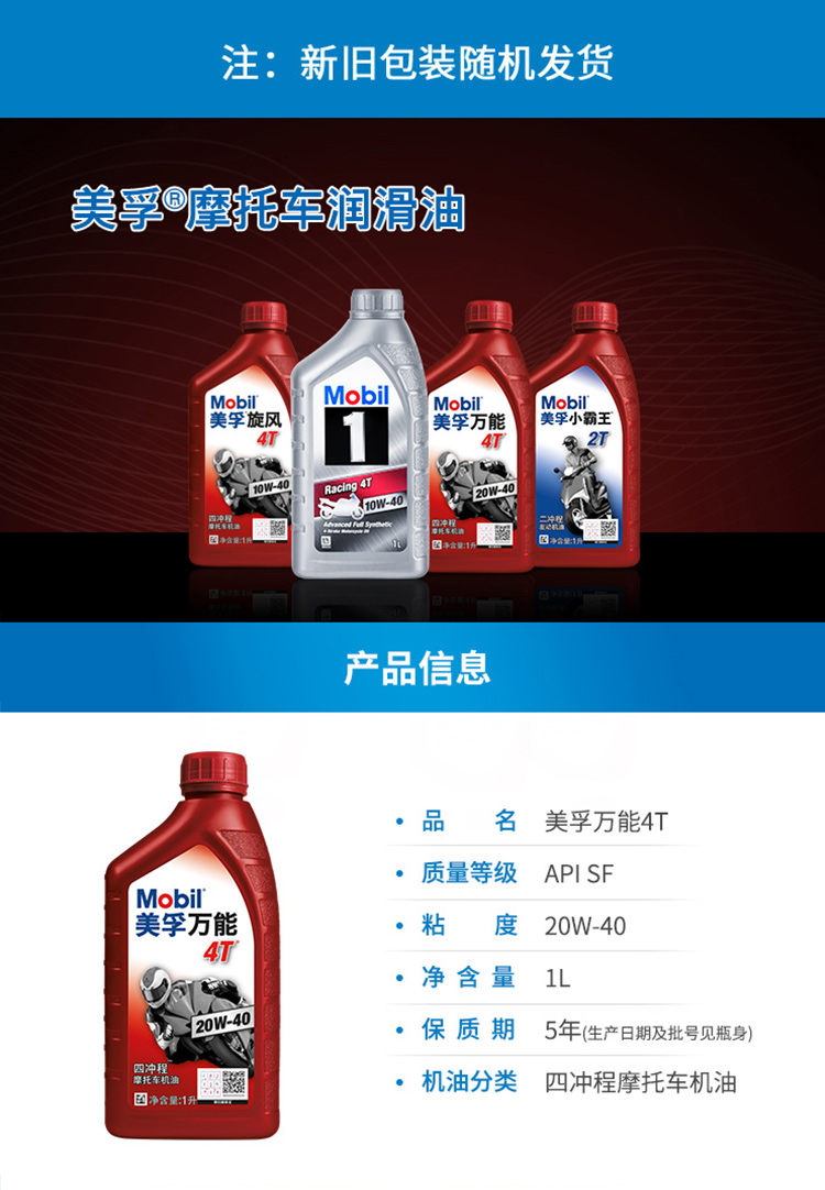 美孚 齿轮油 20W-40 万能4T SF级 1L 1瓶