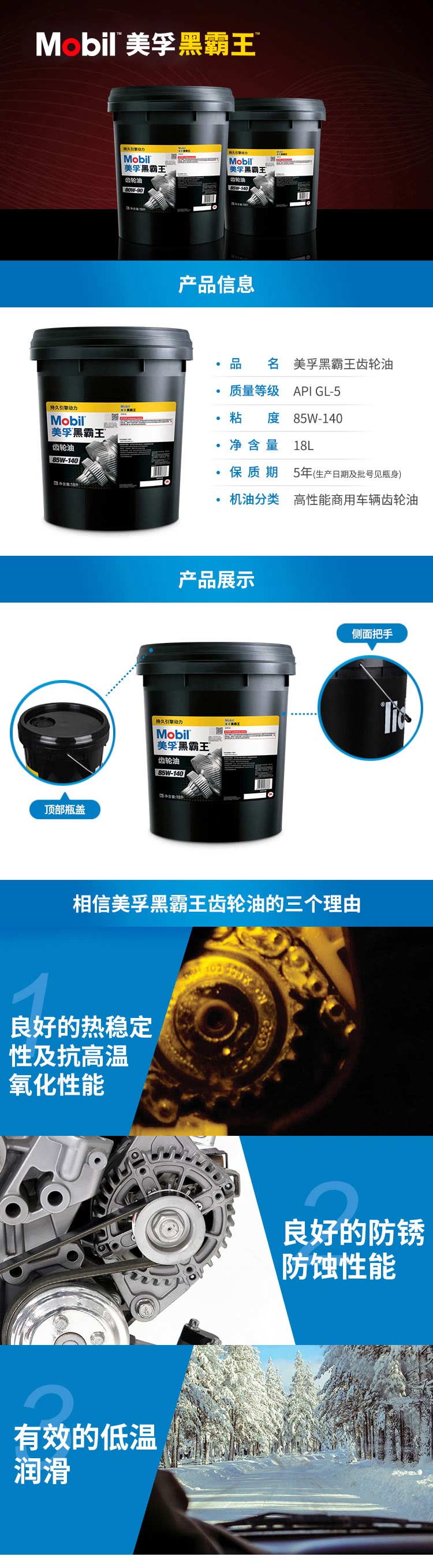 美孚 齿轮油 GL-5 85W-140 18L 1瓶