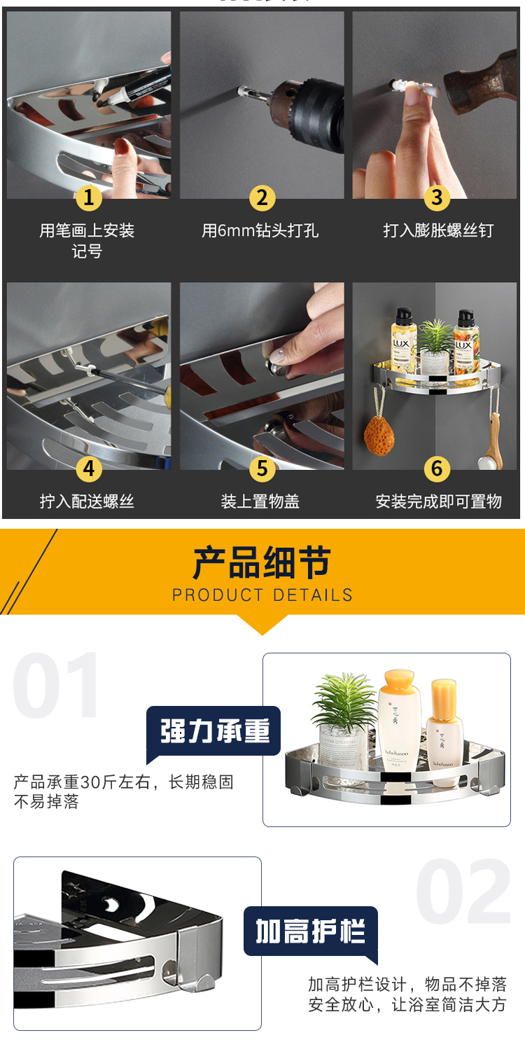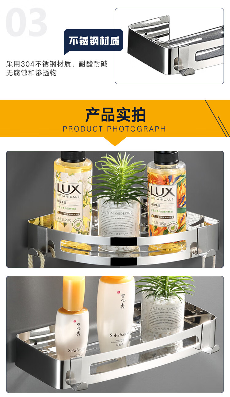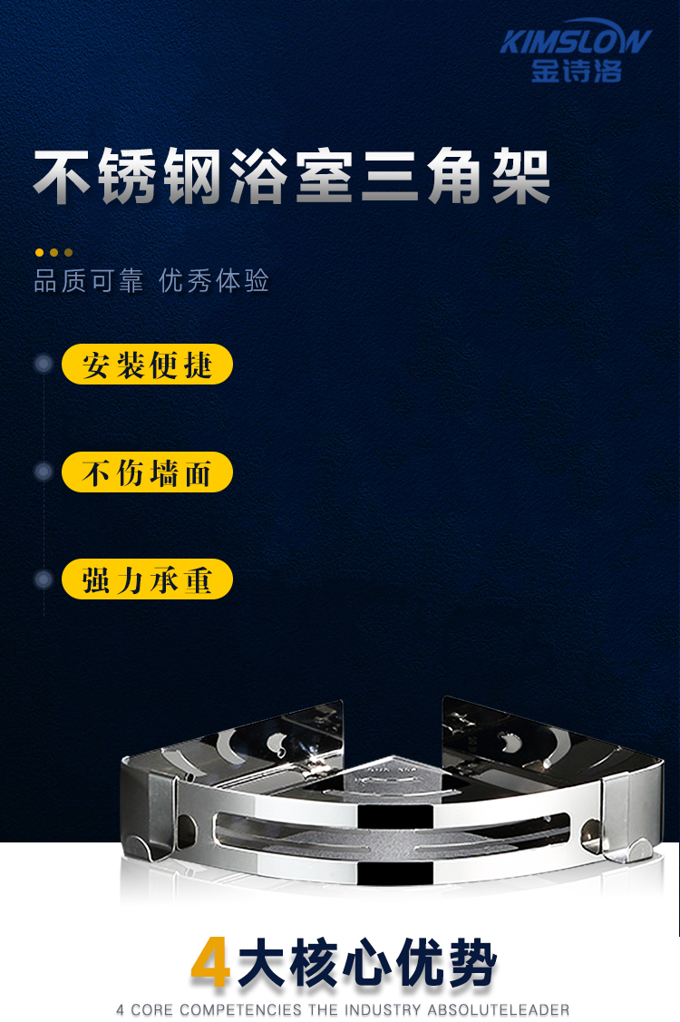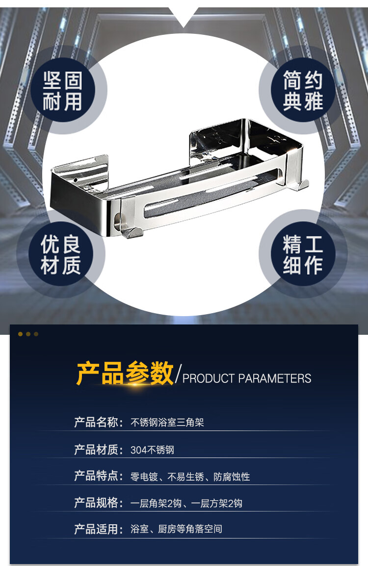 金诗洛 不锈钢洗手间浴室三角架 K203 304一层角架2钩 1个