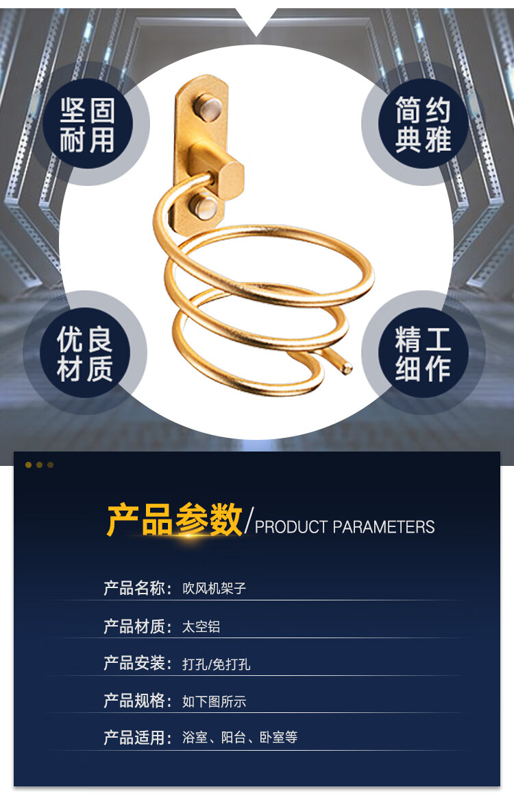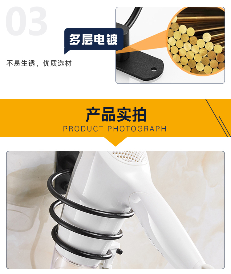 金诗洛 吹风机架子 K203 免打孔+打孔(黑色) 1个