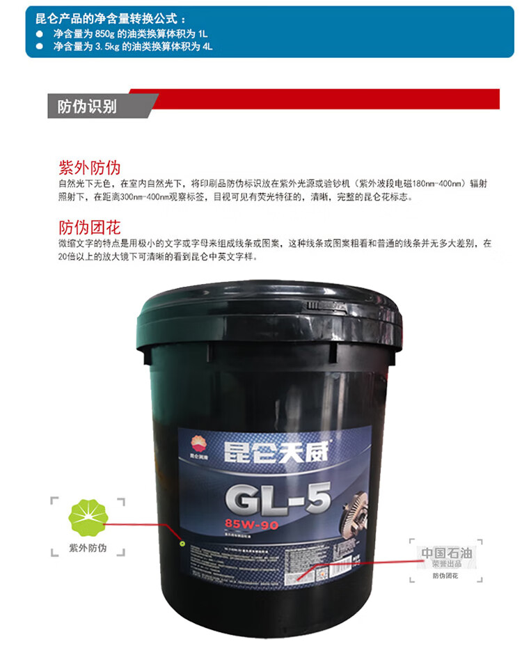 昆仑 天威润滑油 GL-5 85W-90 18L 1桶