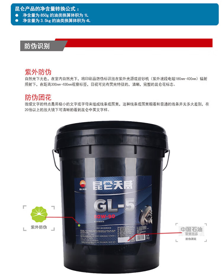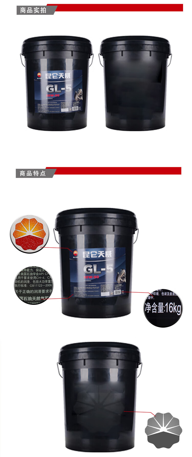 昆仑 天威润滑油 GL-5 80W-90 16kg 1桶
