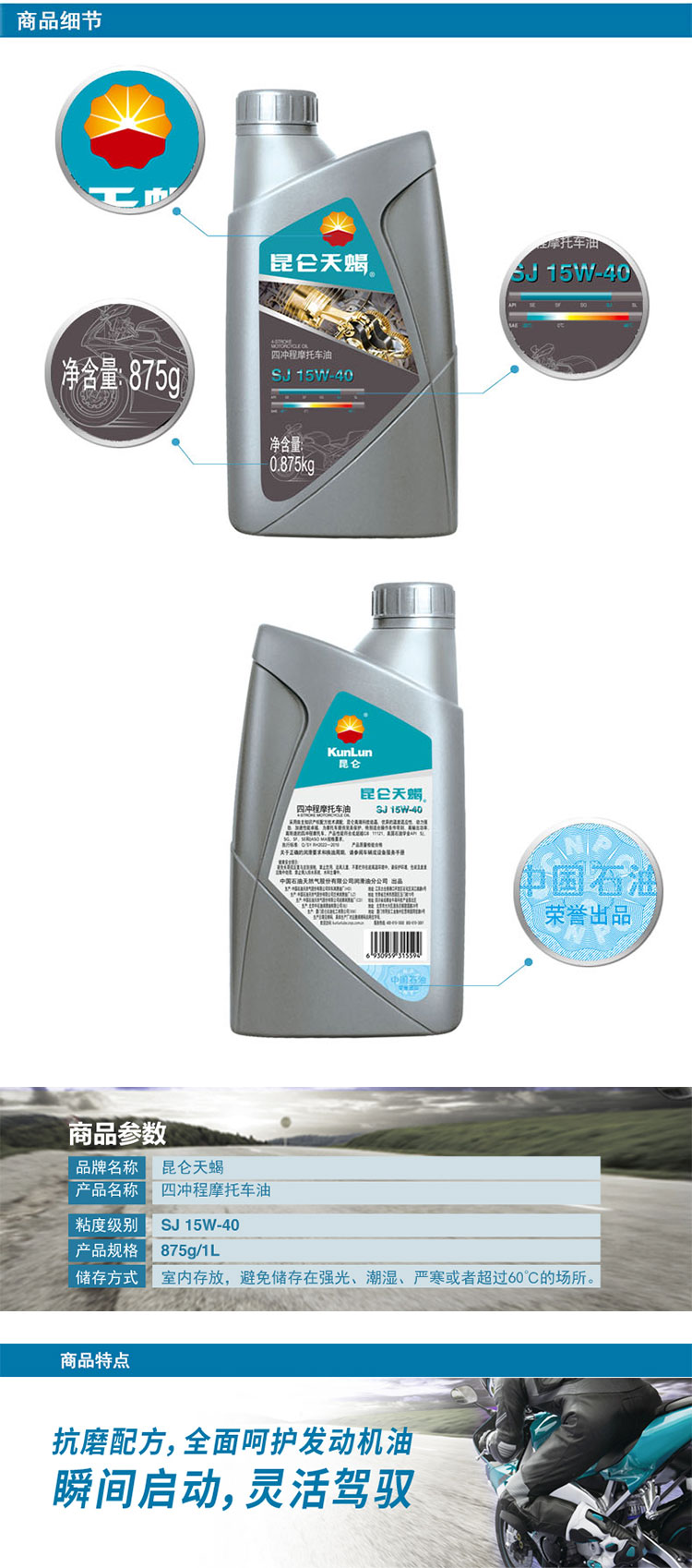 昆仑 四冲程摩托车机油 SJ 15W-40 天蝎 1L 1瓶