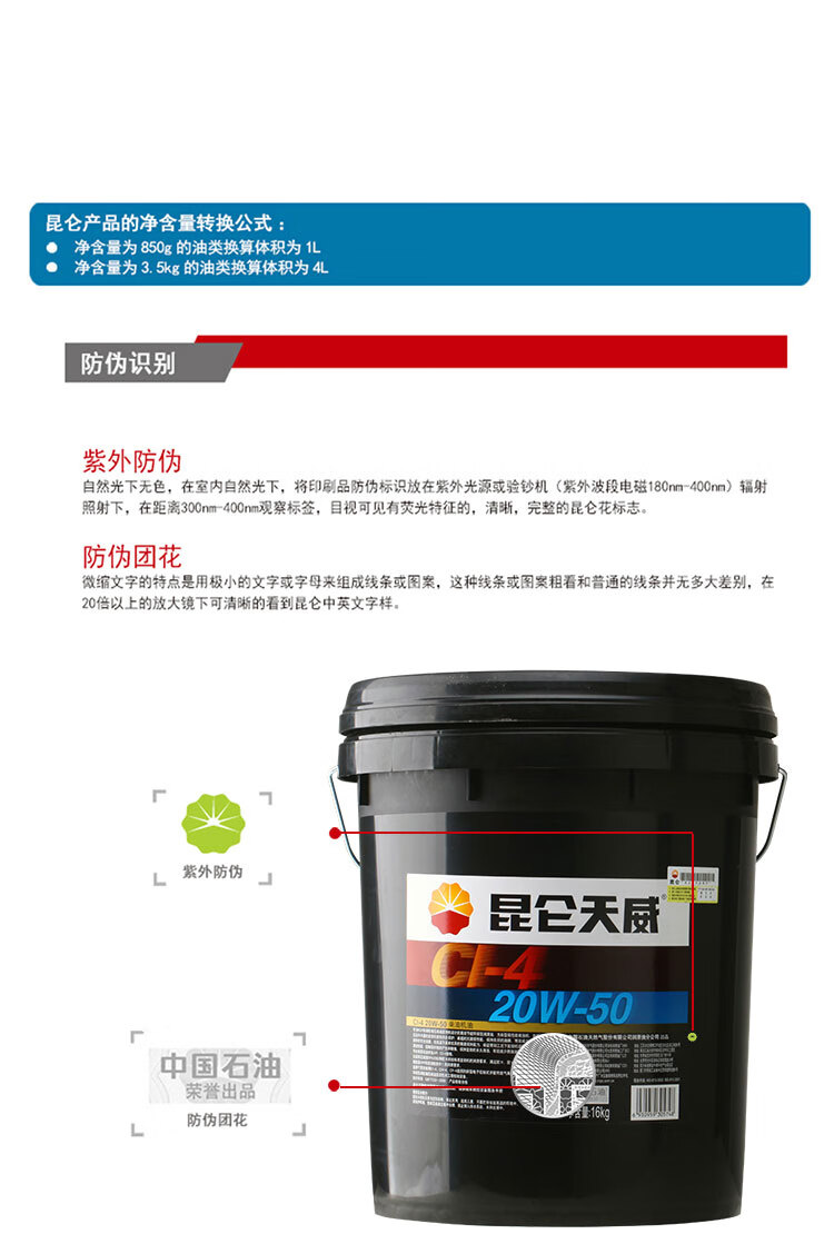 昆仑 天威柴机油 CI-4 20W-50 18L 1桶