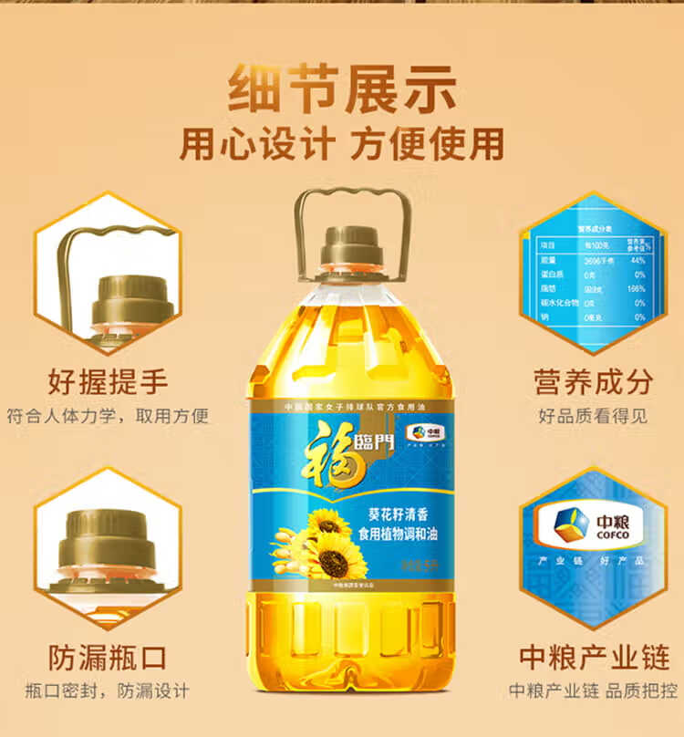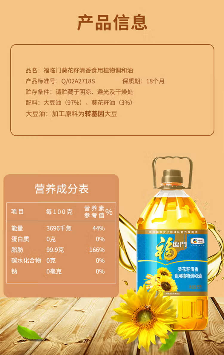 福临门 葵花籽清香植物调和油 5L 4桶 1箱
