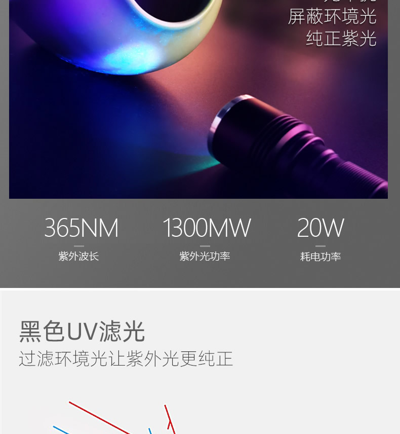 神鱼 防伪鉴定专用紫外线手电筒 SYQ-01 20W 32*152mm 1只