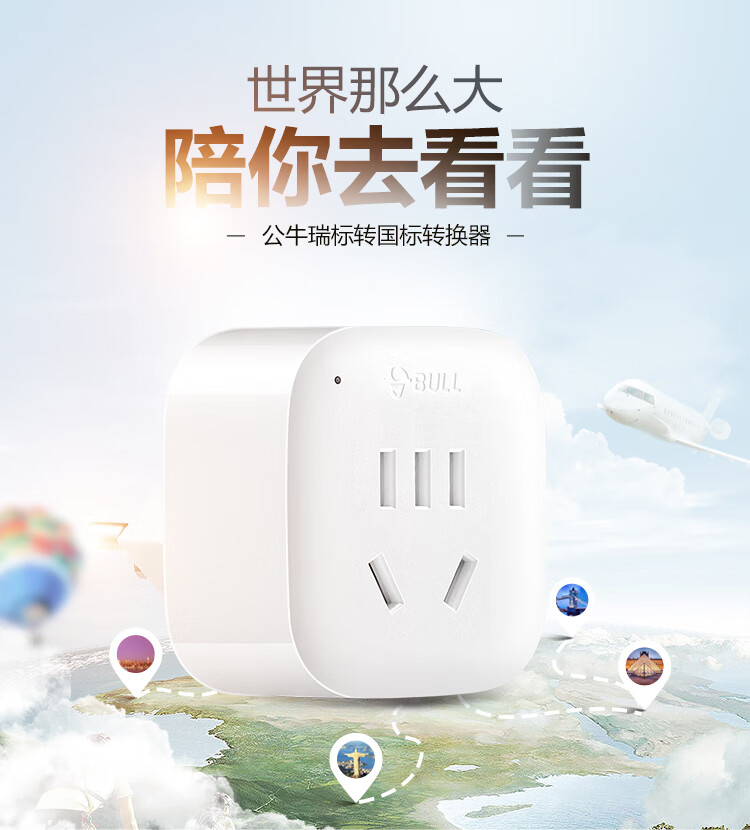 公牛 转换插头 GN-L01W 2位瑞士标转国标 1个