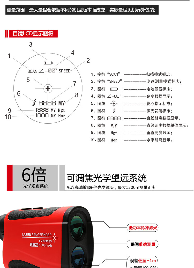 优利德 激光测距望远镜 LM1200 1个