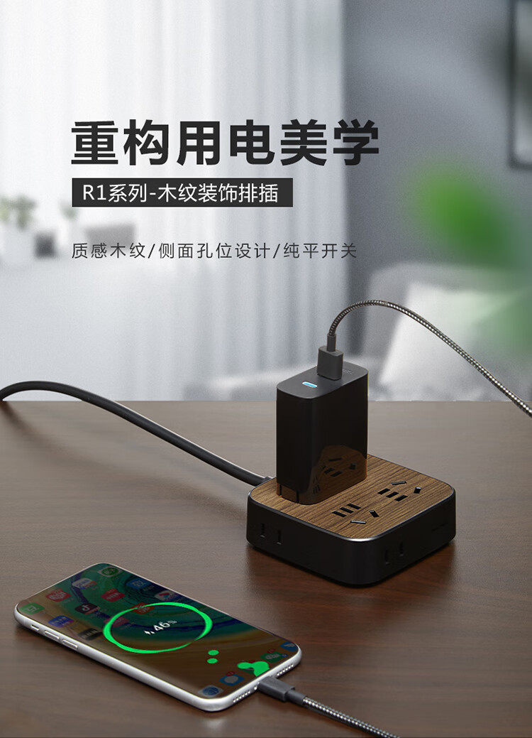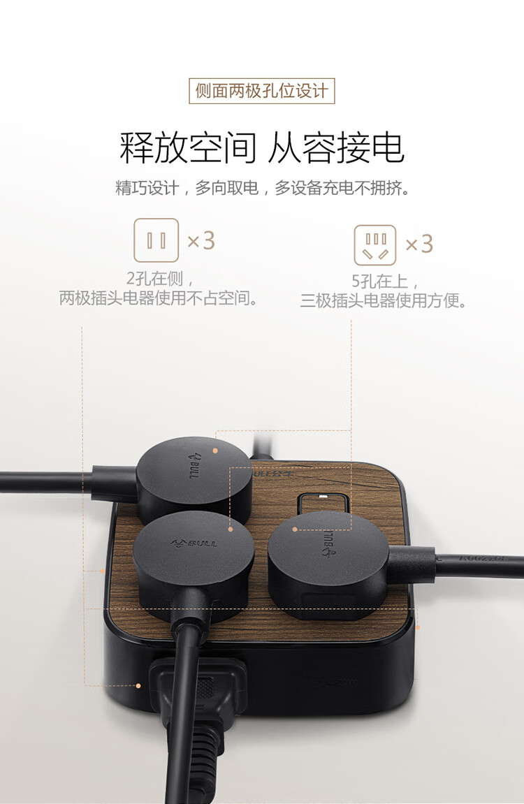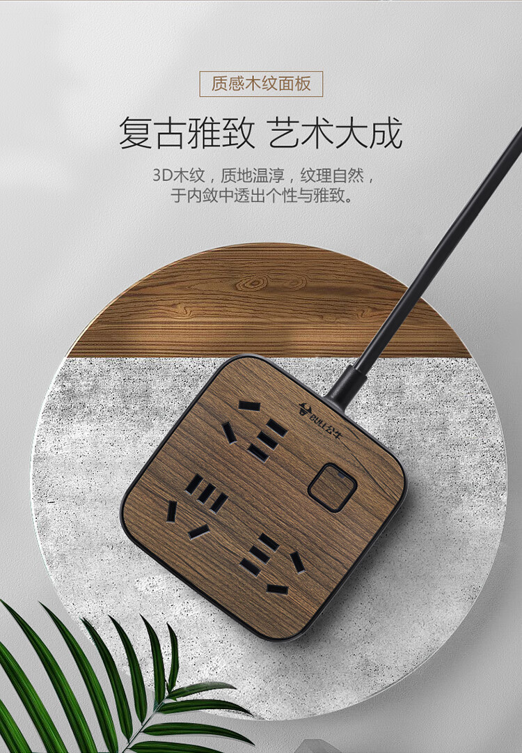 公牛 插线板 GN-R3330 6位总控1.8米 黑色木纹 1个
