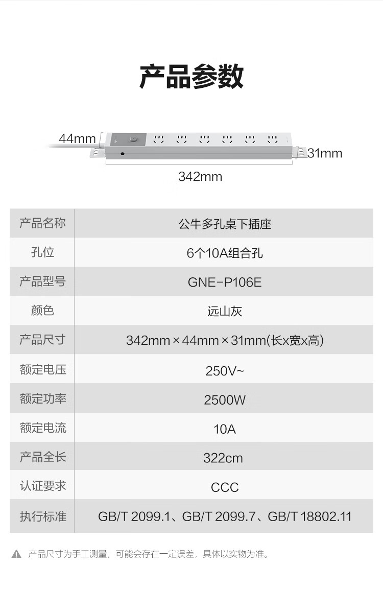 公牛 插线板 GNE-P106E 6位总控全长3米 1个