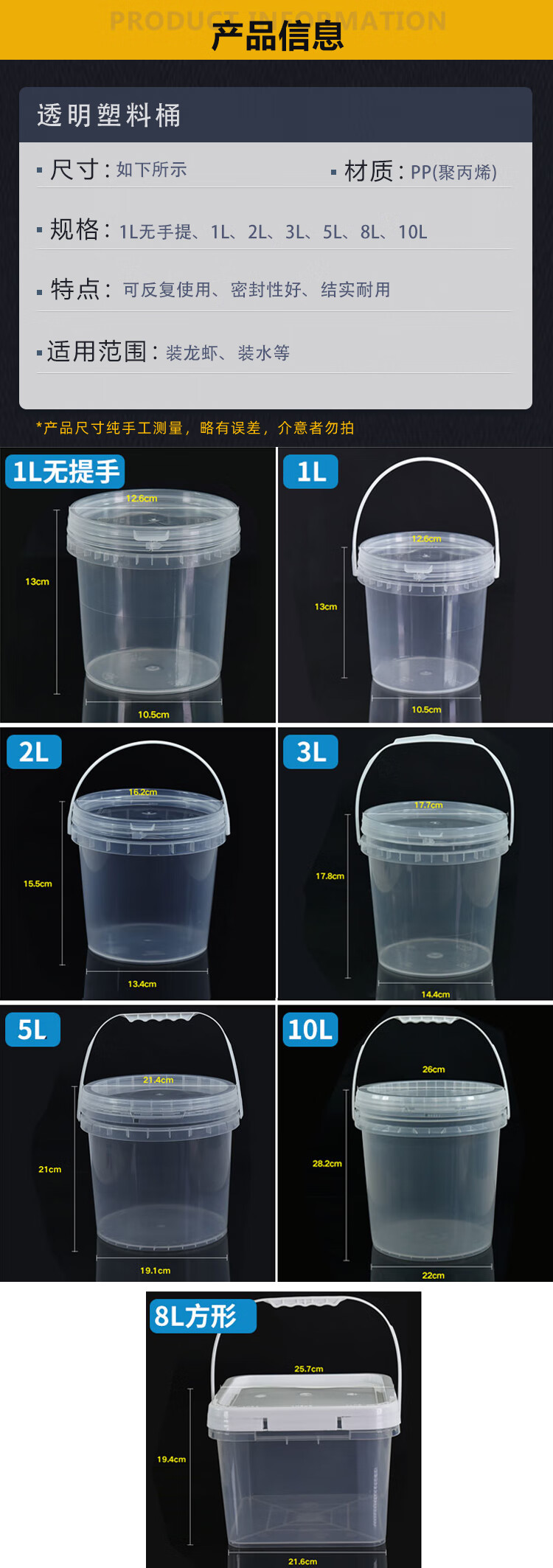 稳斯坦 透明塑料桶 WST076 2L 1个