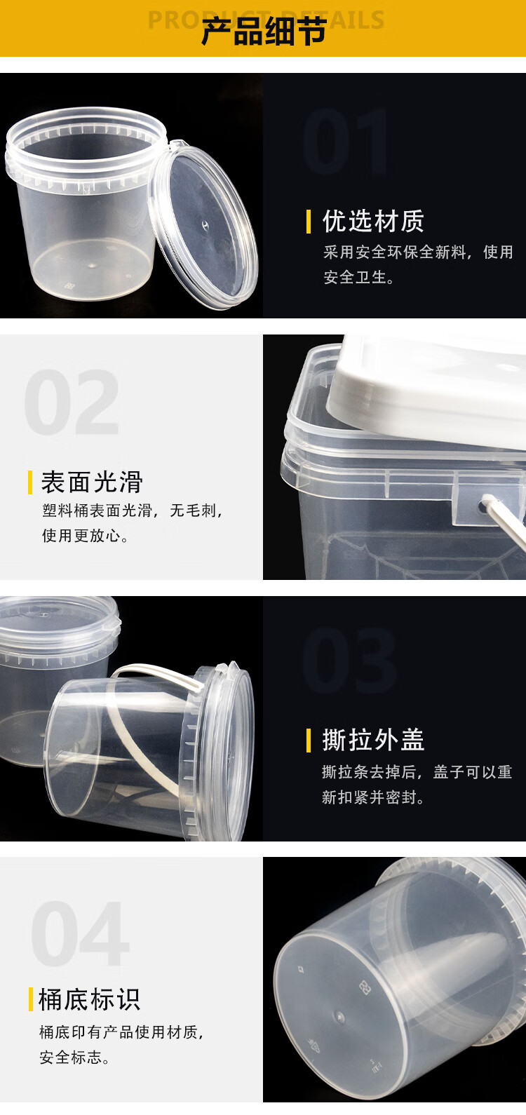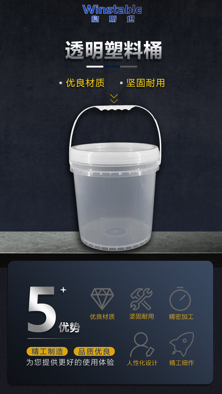 稳斯坦 透明塑料桶 WST076 1L(不带提手) 1个