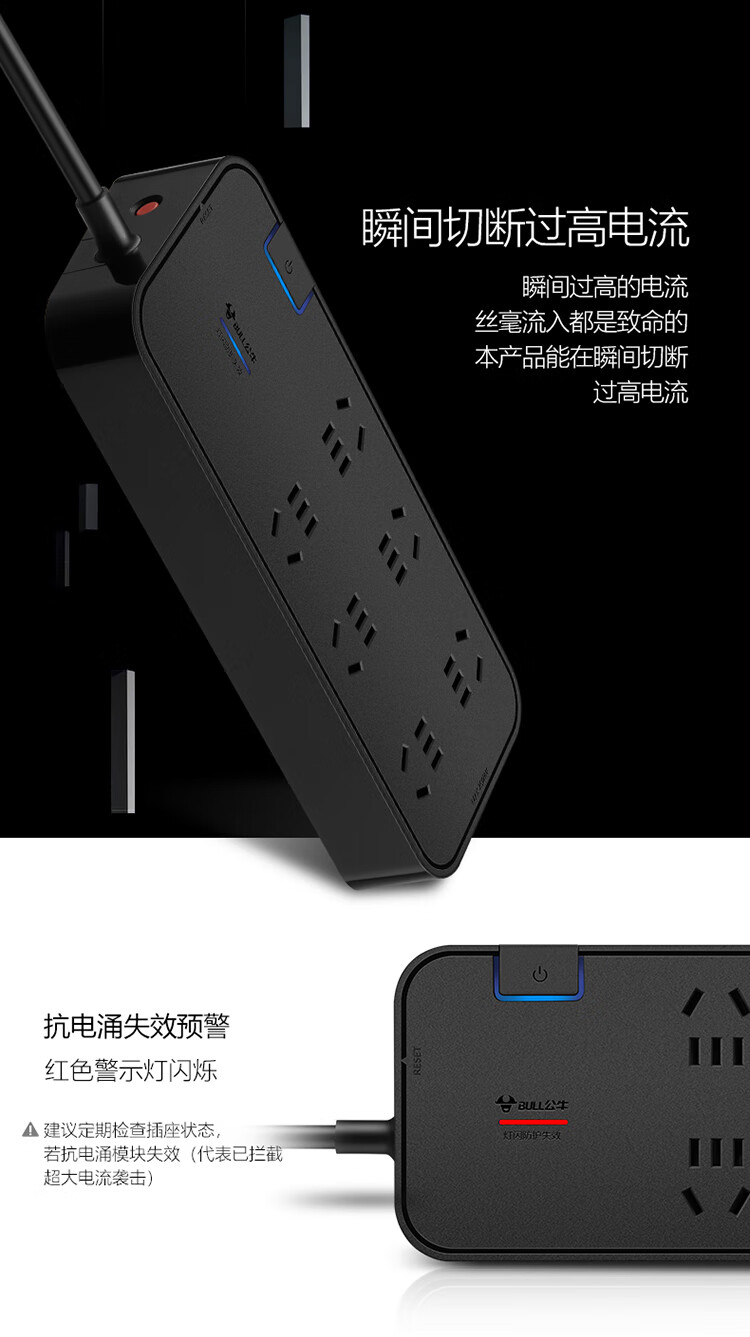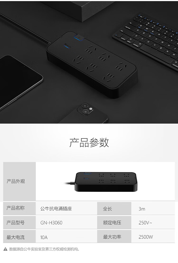 公牛 插线板 GN-H3060 6位总控全长3米 1个