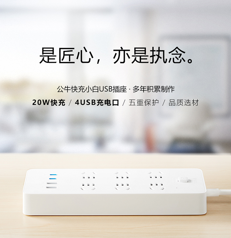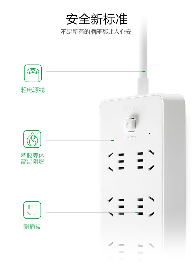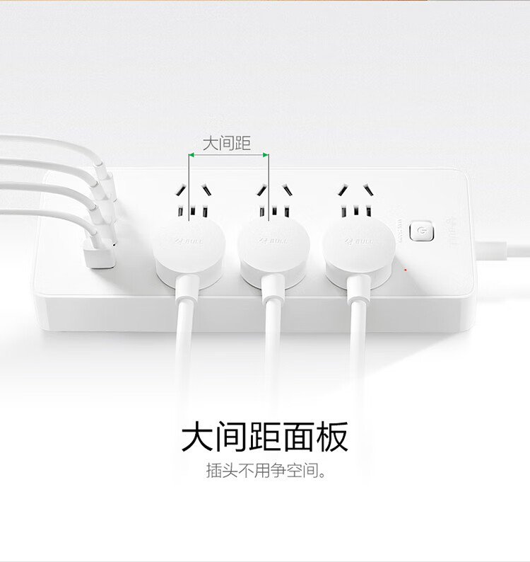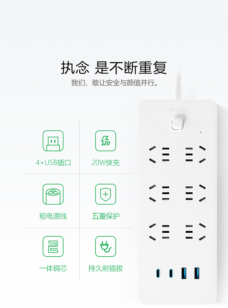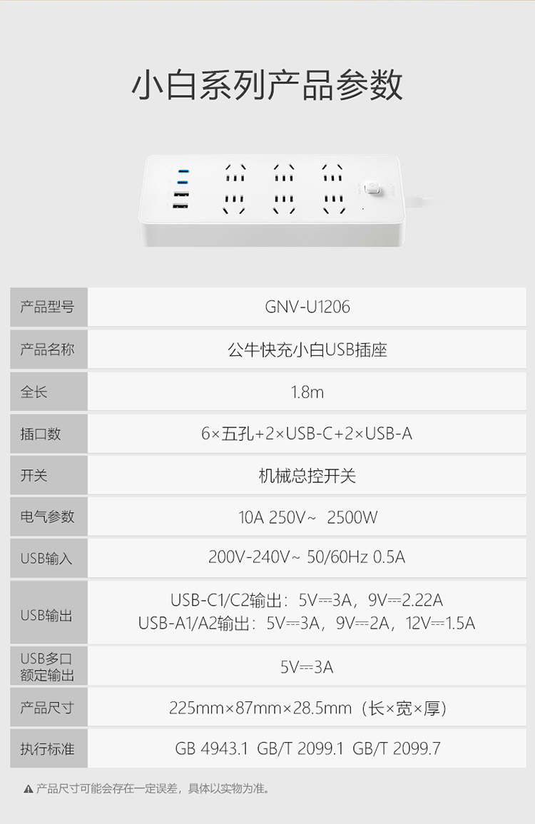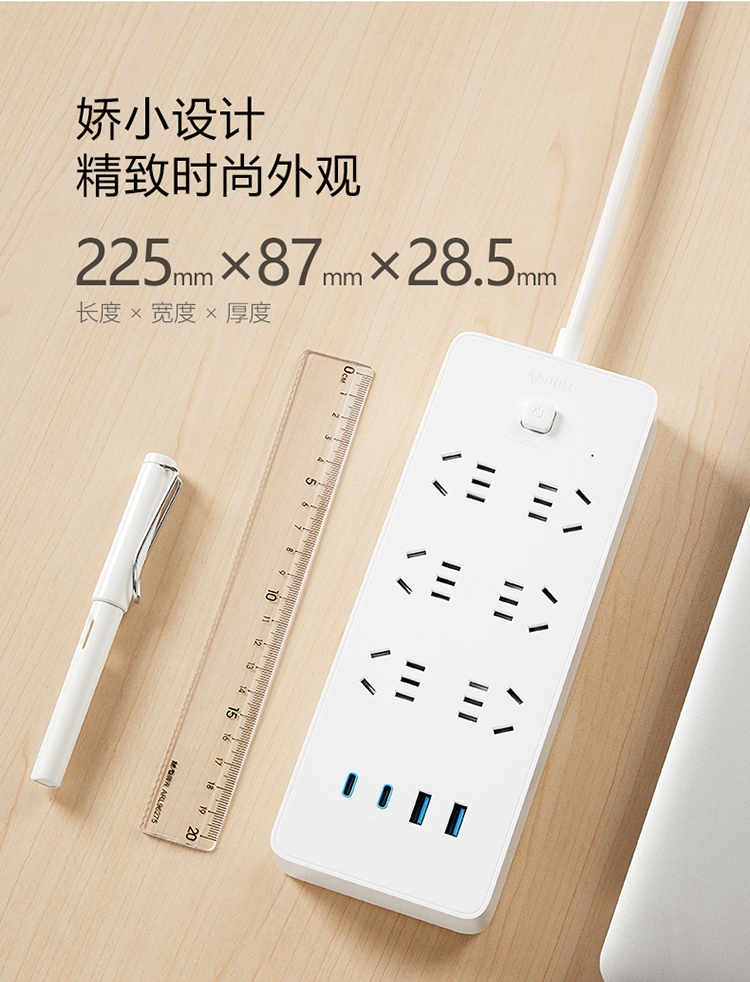公牛 插线板 GNV-U1206 Type-c口+USB口+6插孔全长1.8米 白色 1个