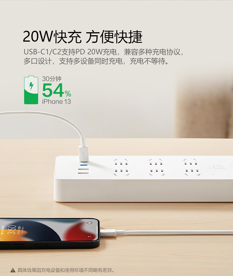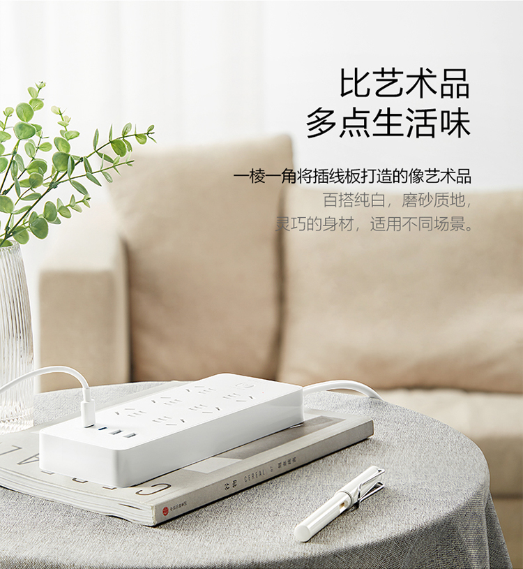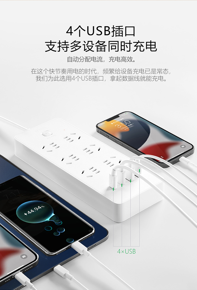• 规格Type-c口+USB口+6插孔全长1.8米