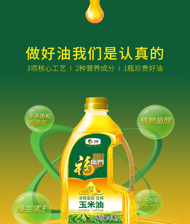 福临门 米面油套装 自然香9%长粒香米5kg+巴盟家用小麦粉5kg+玉米胚芽油1.8L 1袋