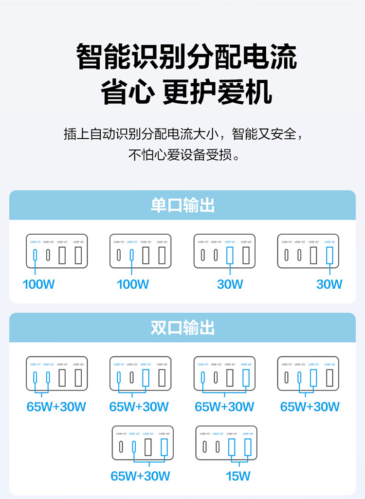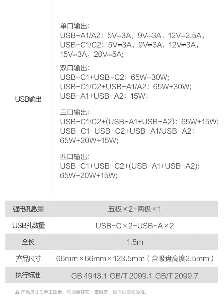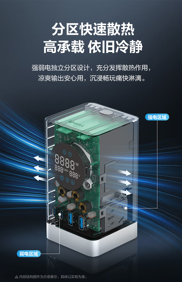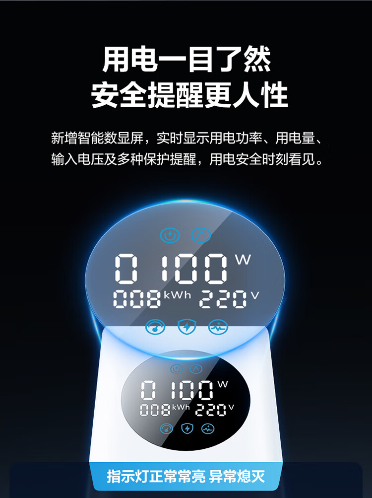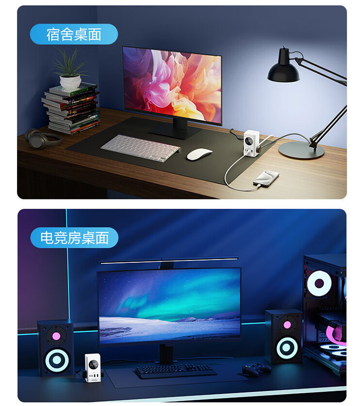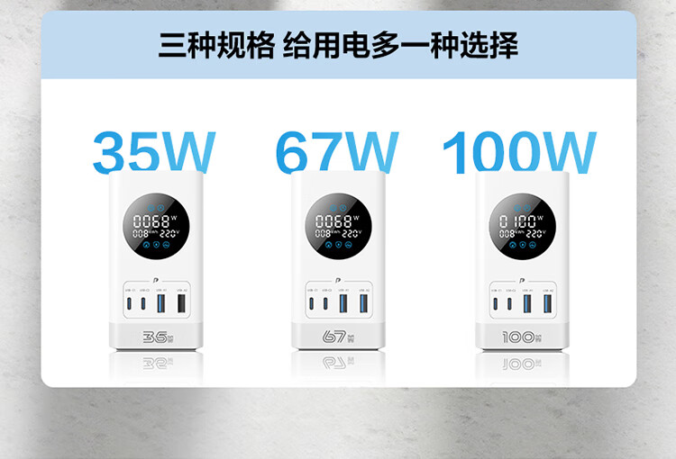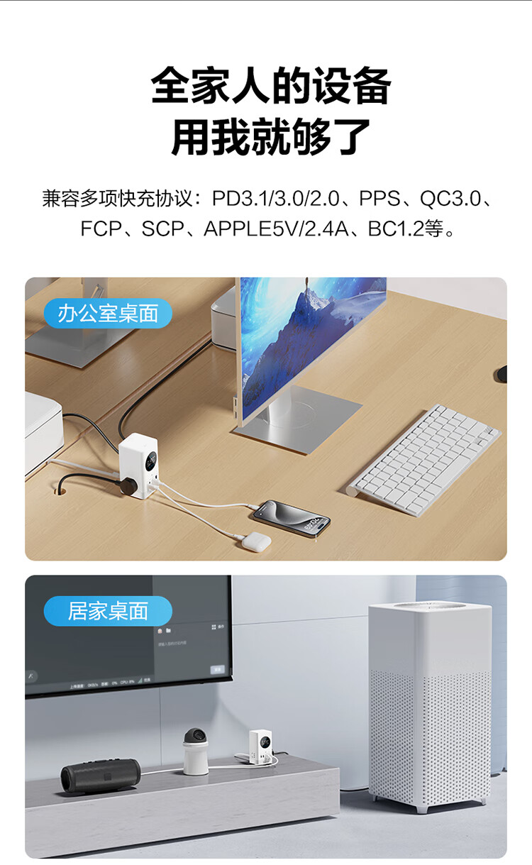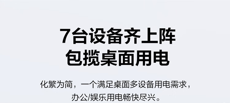 公牛(BULL)智能数显屏幕氮化镓100W快充插座/桌面充电站/桌面插座防雷抗电涌电竞USB立式小电舱 2C2A+3插孔 白1个