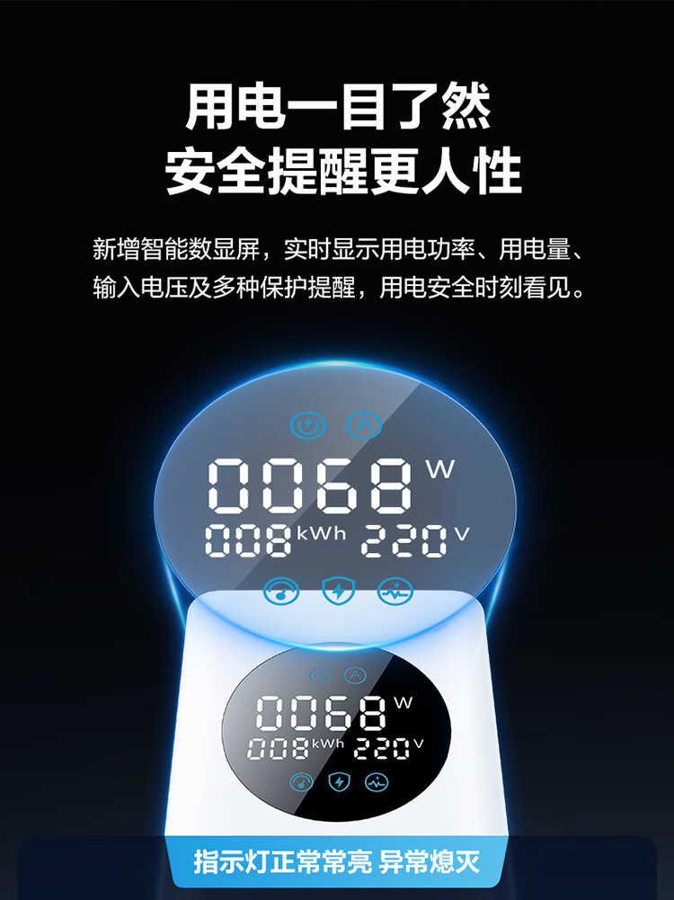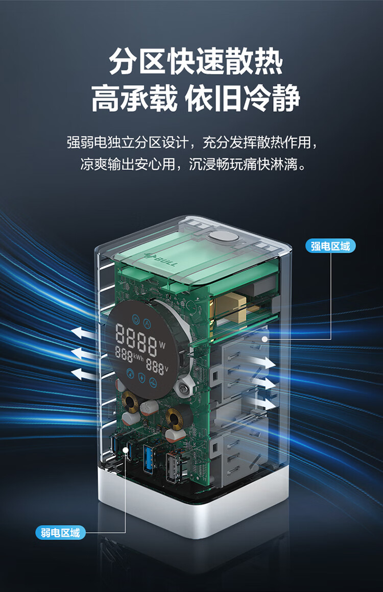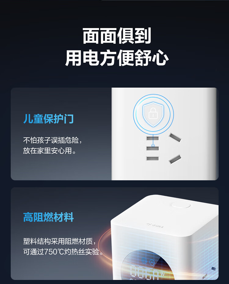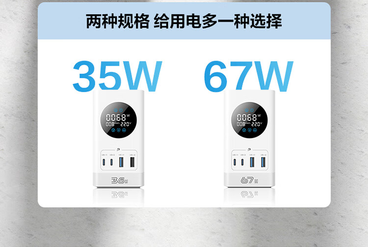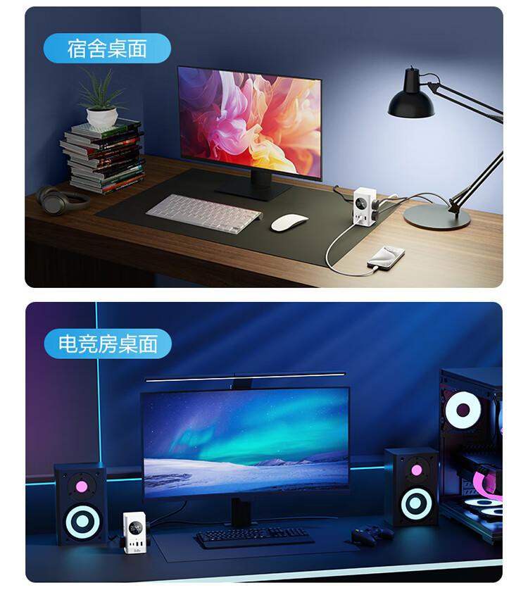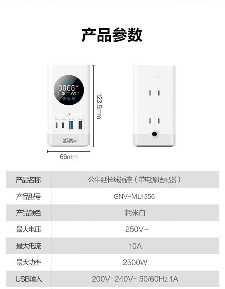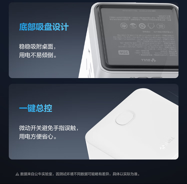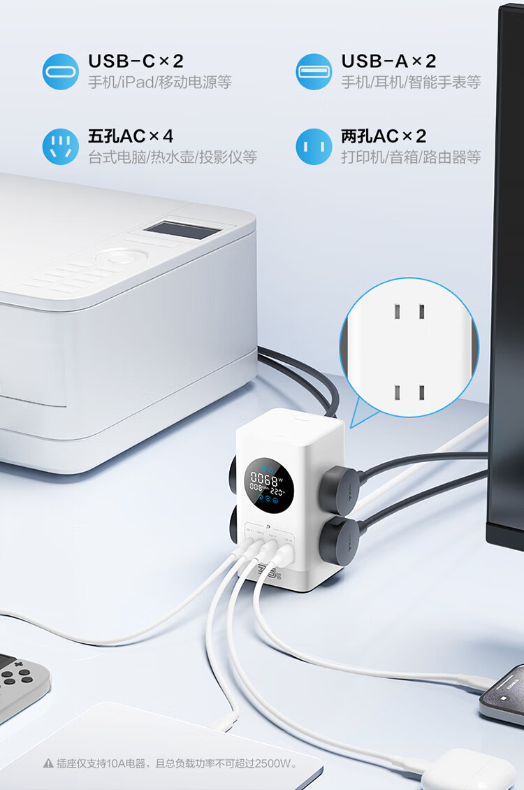 公牛(BULL)智能数显屏幕电竞氮化镓35W快充小电舱立式插座/多功能USB桌面笔记本插线板插排 2C2A+6插孔 白 1个