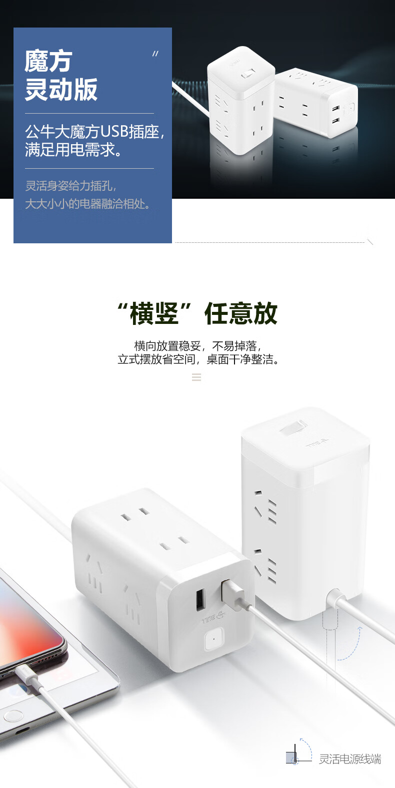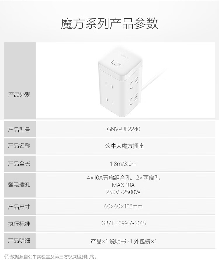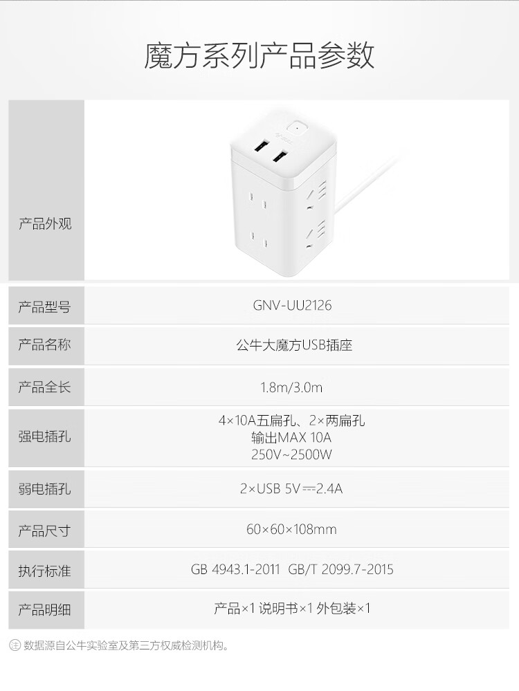 公牛 智能USB插座 GNV-UU2126 双USB大魔方全长1.8米 1个