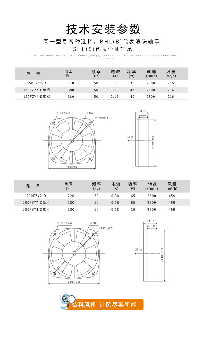 弘科 小型轴流风机 150FZY4-D 150W 220V 1台