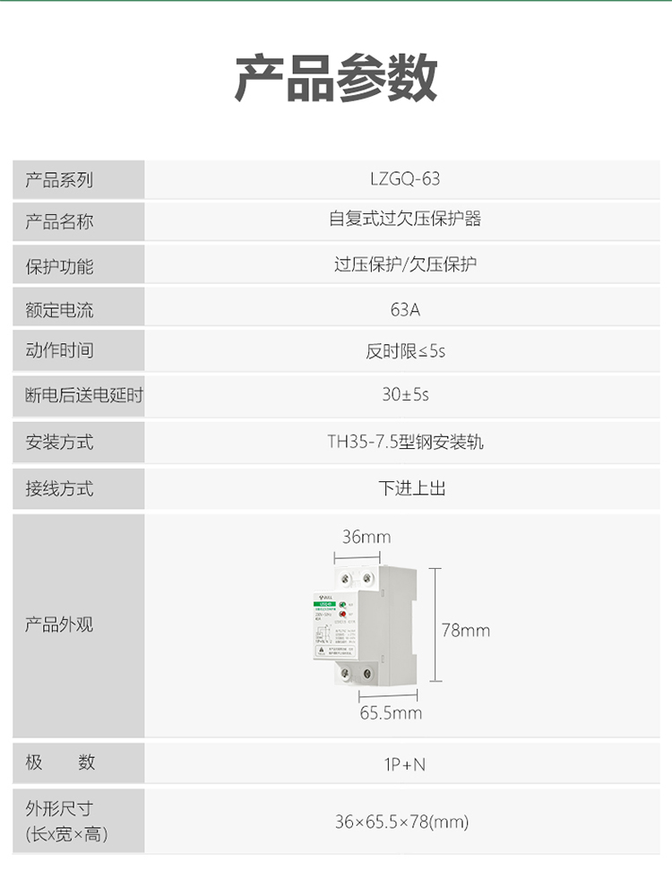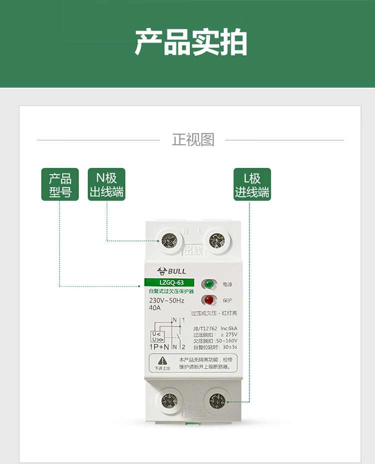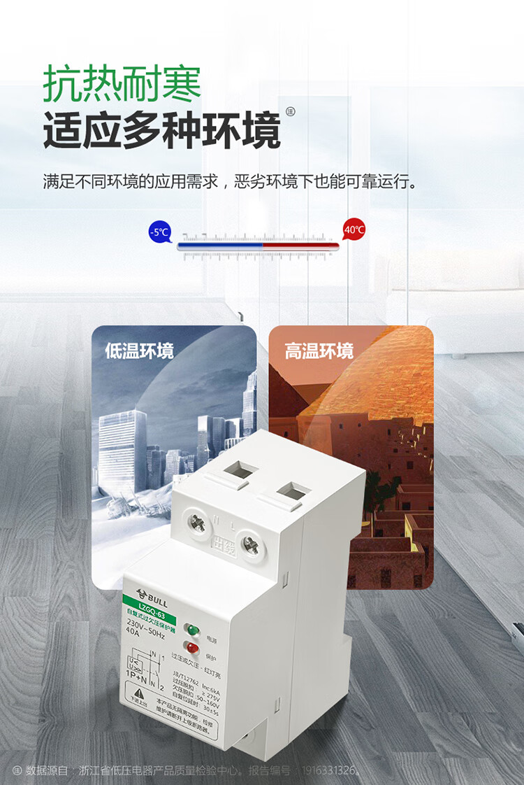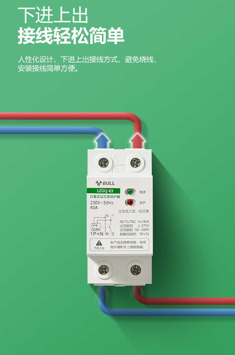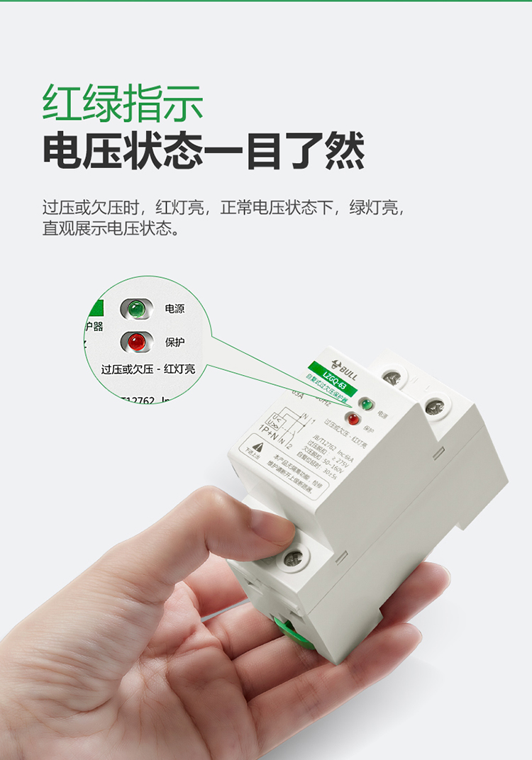 公牛(BULL)空气开关 自复式过欠压保护器家用电源空开关LZGQ-63/1PN/63 1个