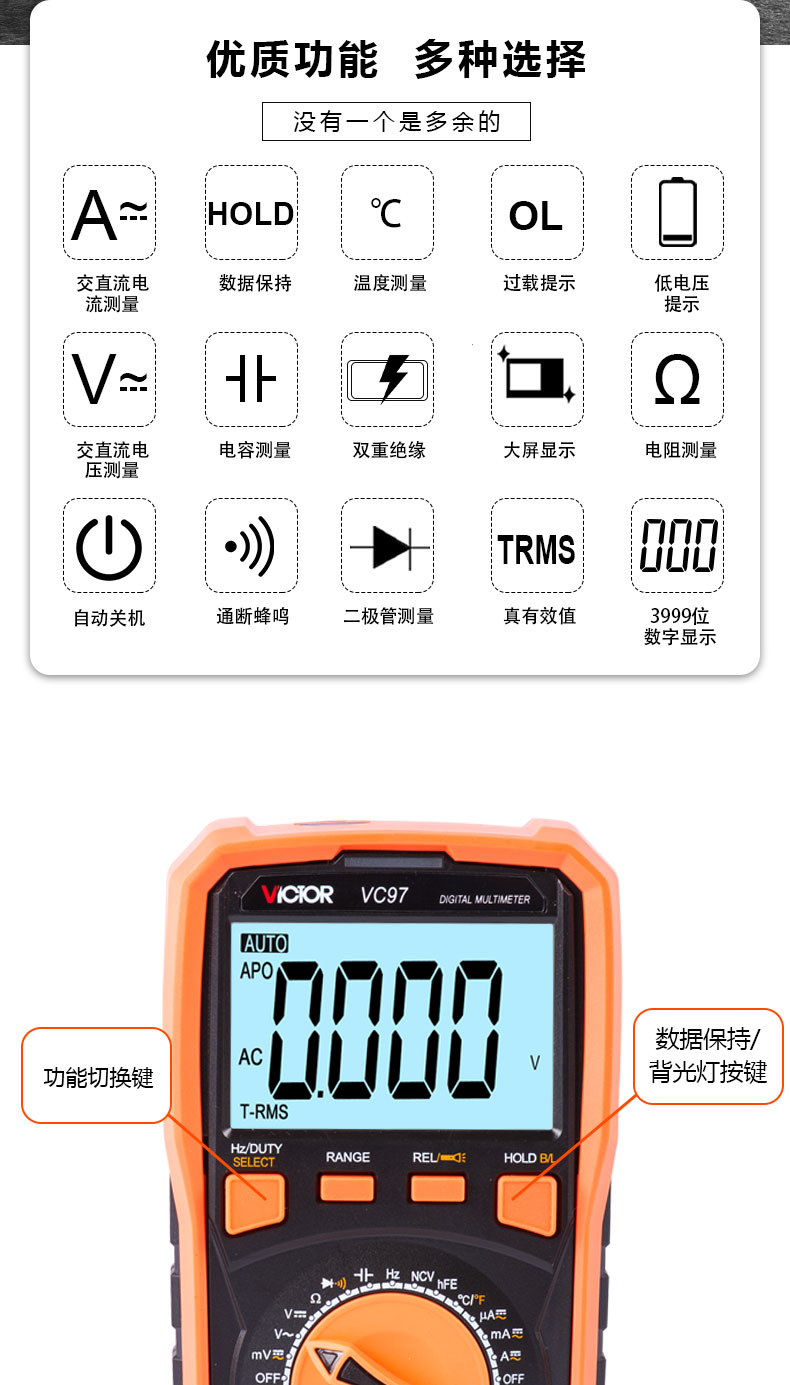 胜利仪器 数显自动量程万能表 VC97+充电套装 1个
