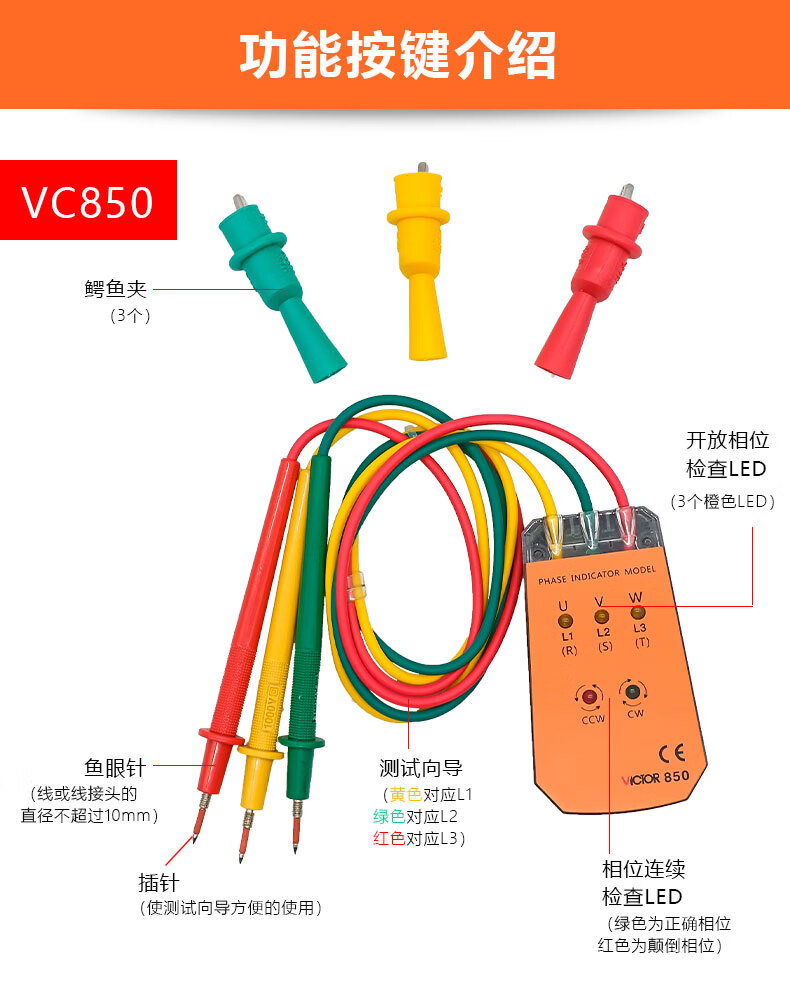 胜利仪器 三相交流电相位计 VC850A 1个