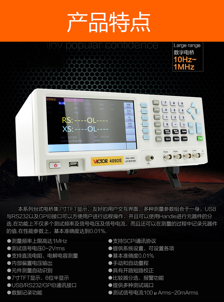胜利仪器 LCR数字电桥测试仪 VC4092B 1台