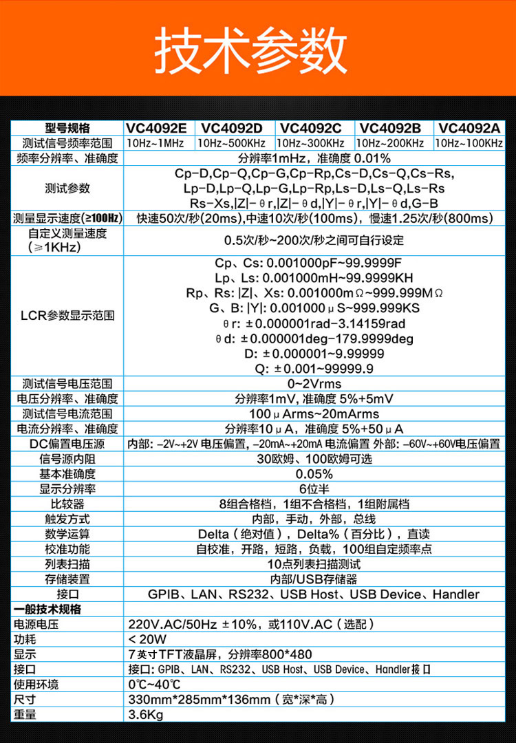 胜利仪器 LCR数字电桥测试仪 VC4092D 1台