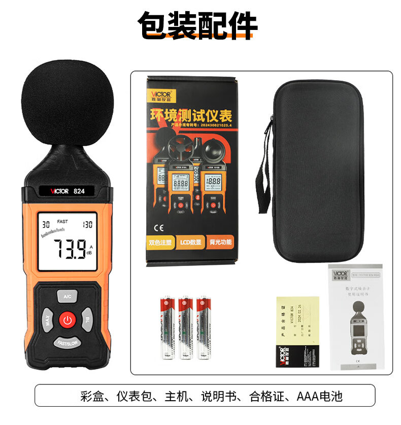 胜利仪器 数字噪音计 VC824+充电套装 1个