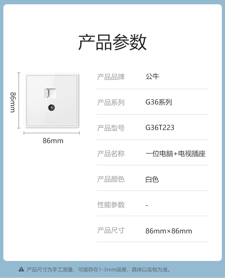 公牛 G12系列开关插座 G36T223 二位电脑带电视 白色 1个