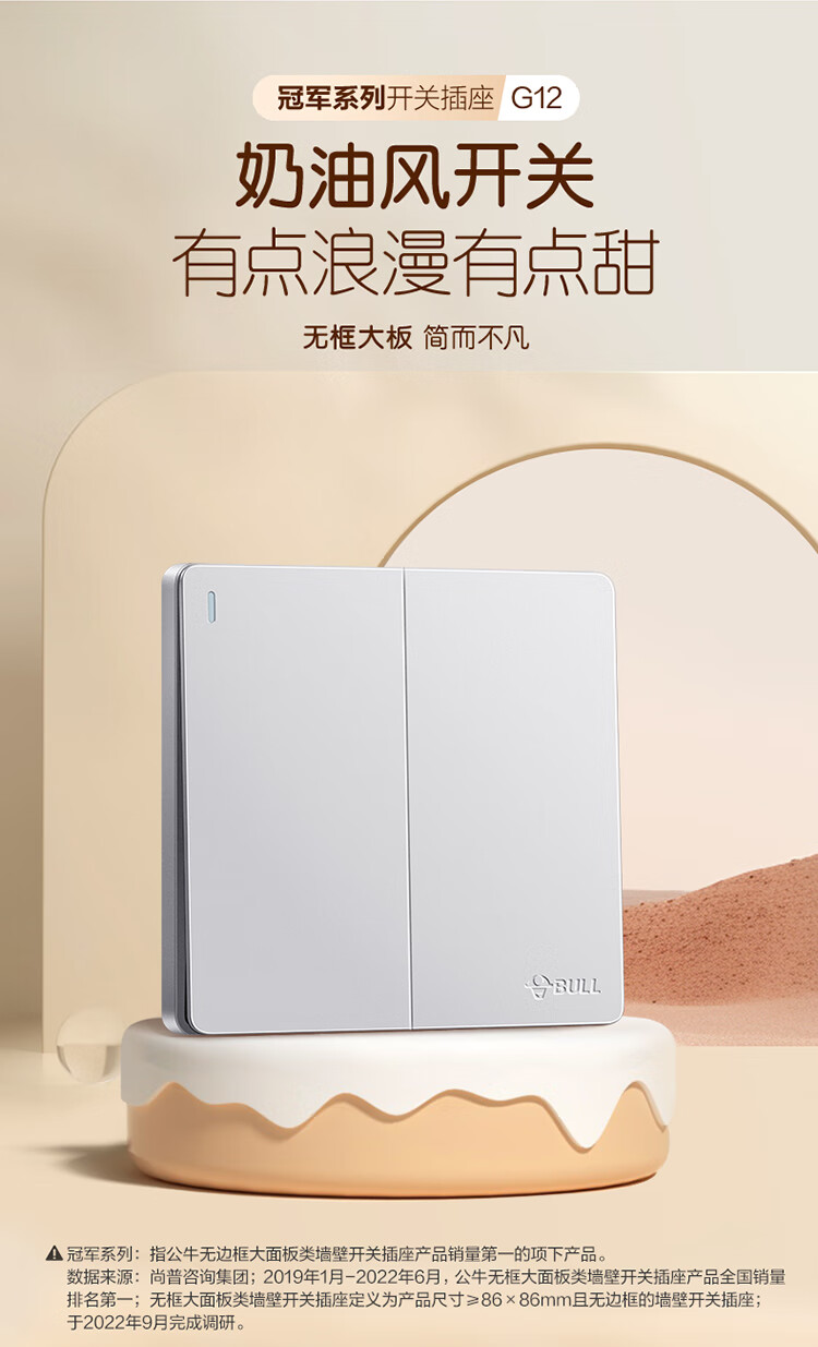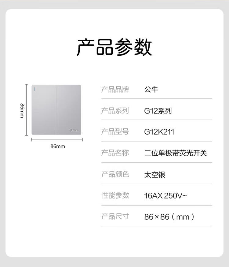 公牛 G12系列开关插座 G12K211 二开单控 太空银 1个
