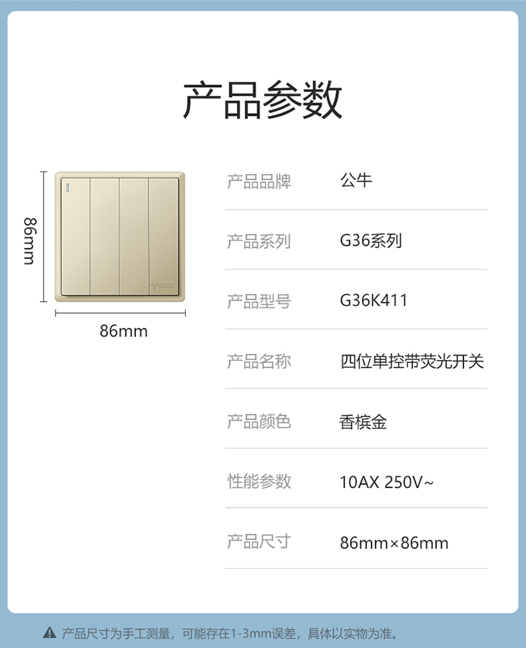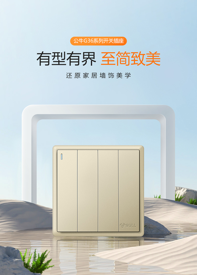 公牛 G36系列开关插座 G36K411 四开单控 金色 1个