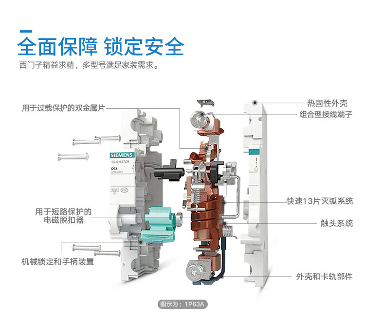 西门子 漏电保护断路器 5SU93361CR63 3P 63A 1个