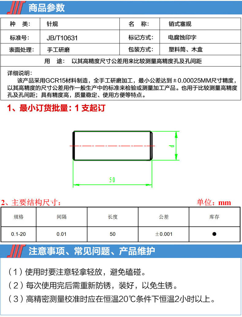 1-6mm(间隔0.01)501支