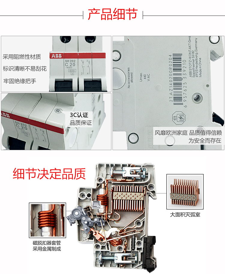 ABB 断路器 SH202-C20 2P 20A 1个