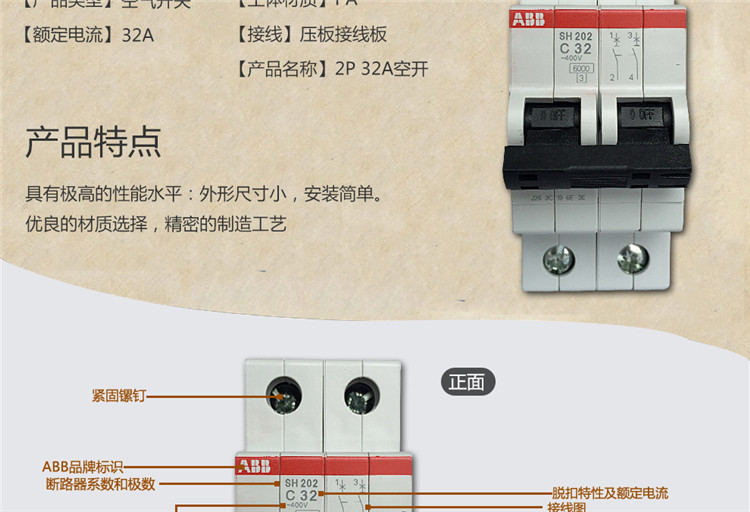 ABB 断路器 SH202-C32 2P 32A 1个