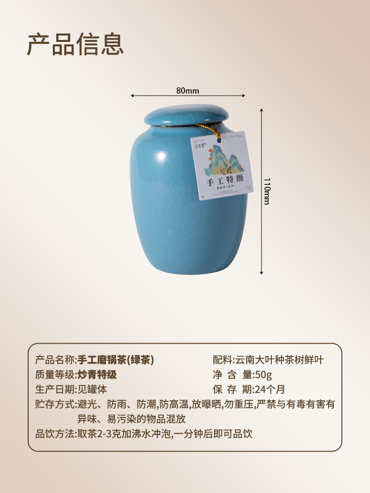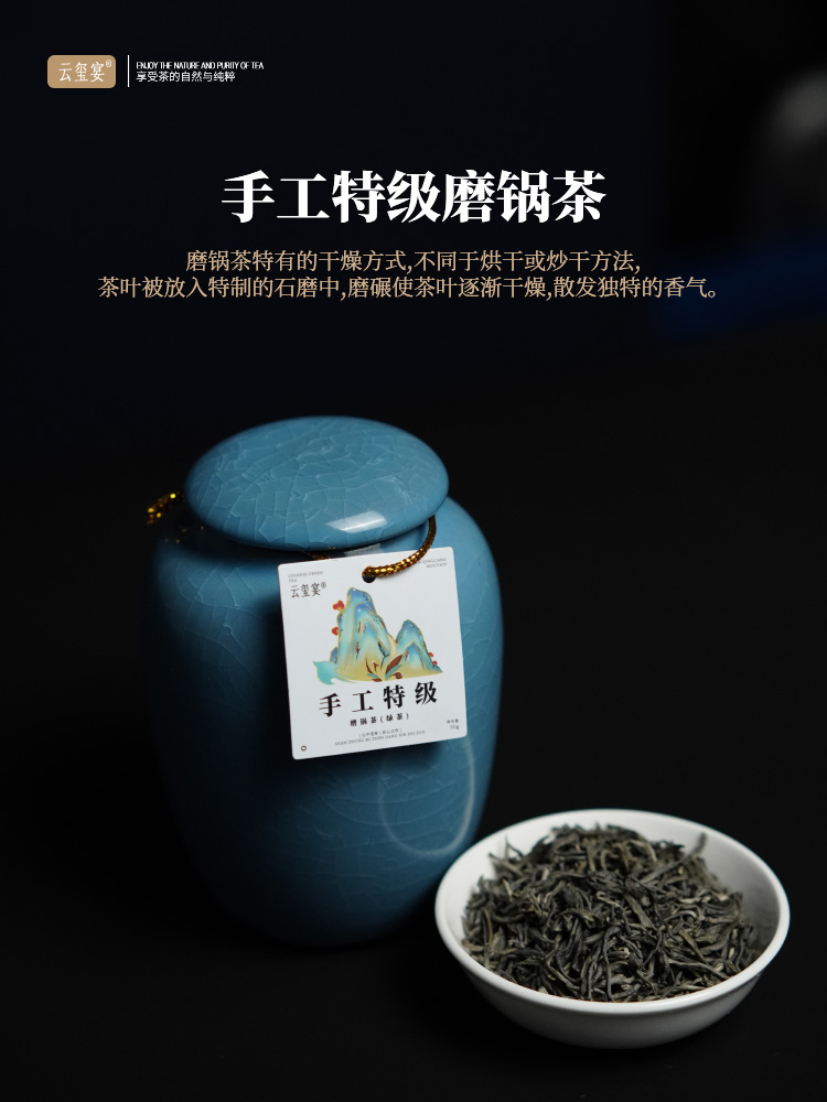 云玺宴 手工特级磨锅绿茶叶礼盒 50g 1盒